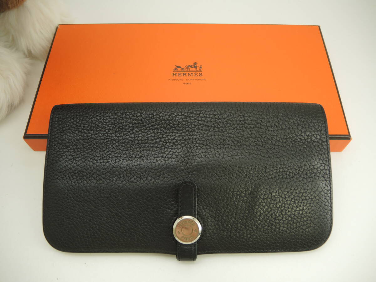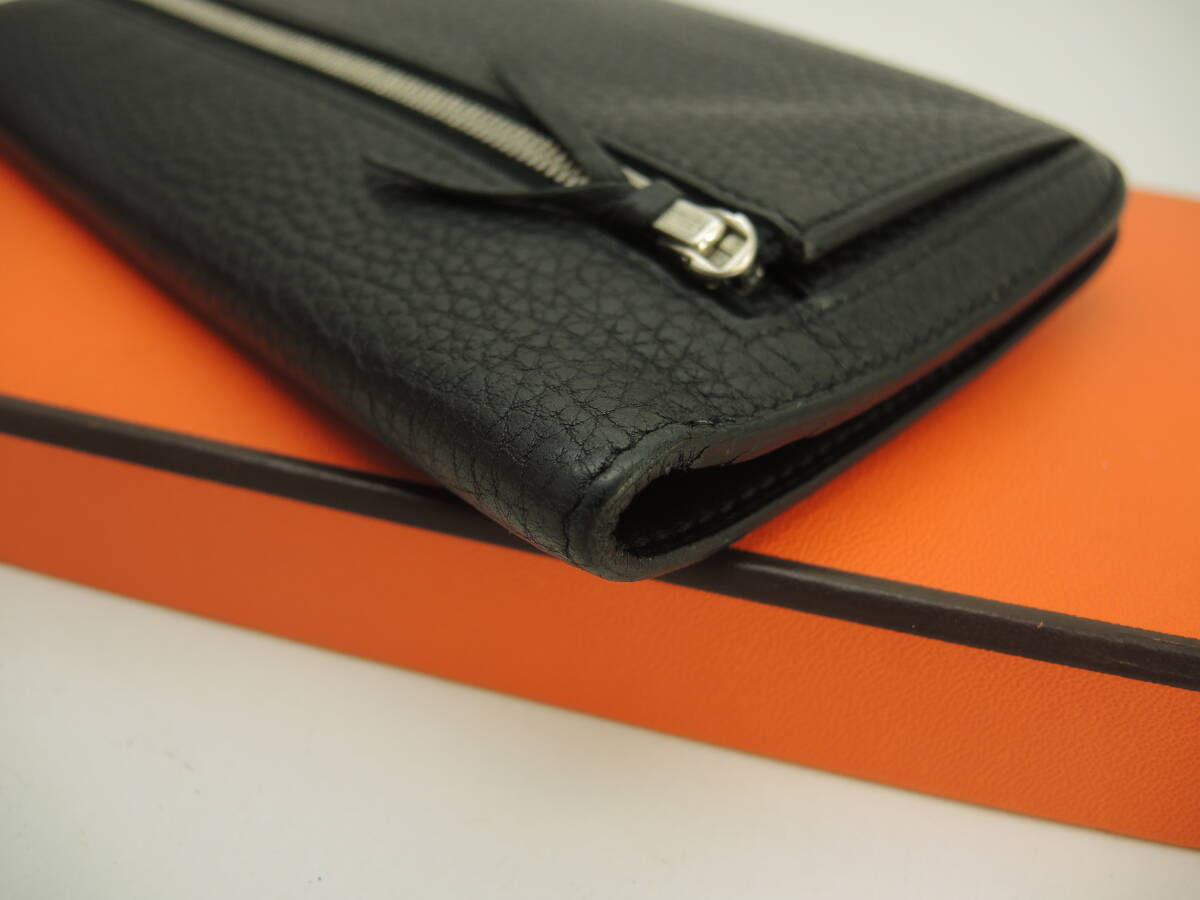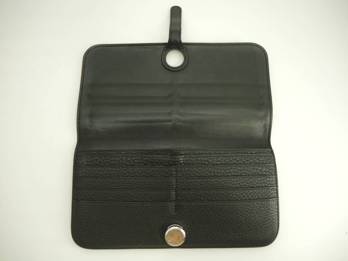 エルメス ドゴンロング トリヨンクレマンス 黒 2折長財布 シルバー金具@□P 6