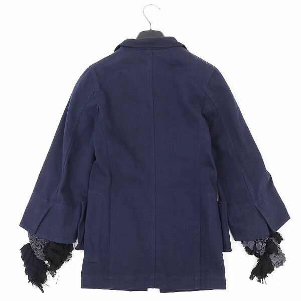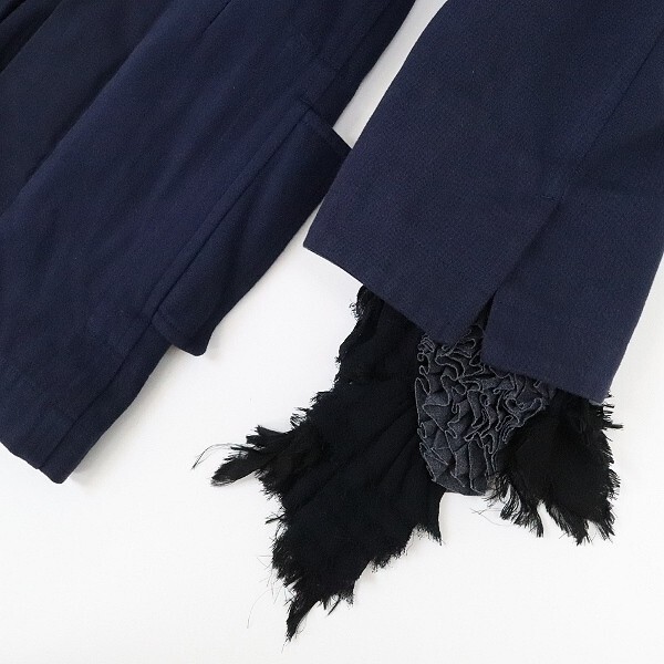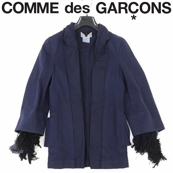 ◆COMME des GARCONS コムデギャルソン AD1999 フリルデザインスリーブ コットン ボタンレス ジャケット 紺 ネイビー M | |