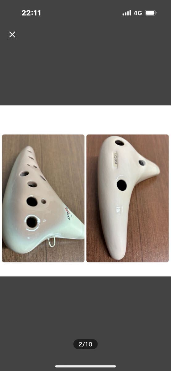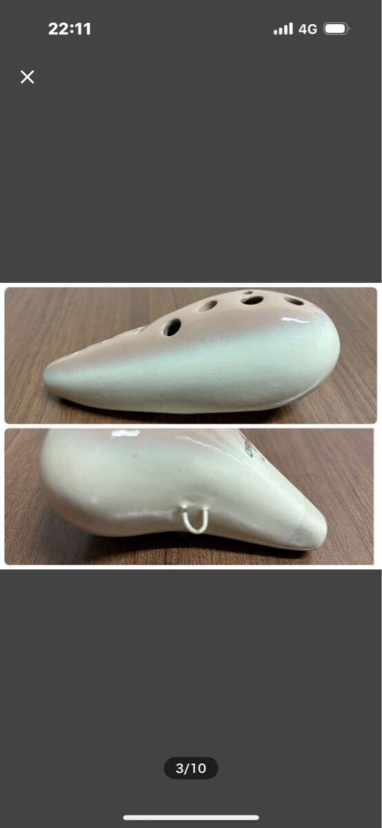 オカリナです。譲り受けた商品につき商品の詳細は分かりませんまた実際音を出しての確認はしておりませんのでご了承ください。金具の塗装が少し剥げています。写真をよくご覧いただいてのご入札でお願い致します。ノークレームノーリターンでお願い致します。神経質な方のご入札はご遠慮ください。ご落札後は元払いにて発送致します。