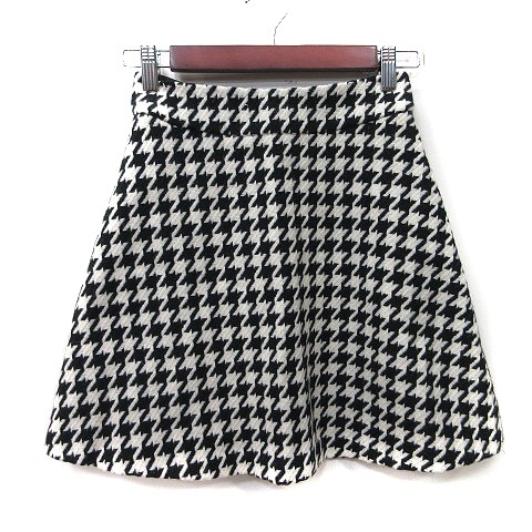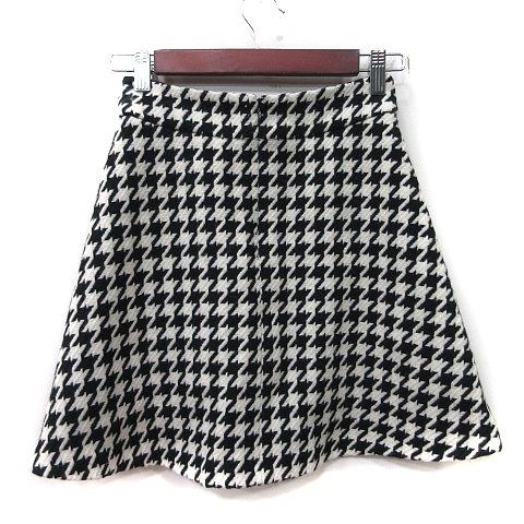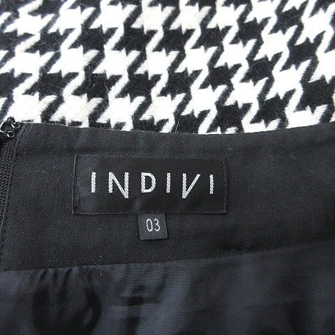 インディヴィ INDIVI 台形スカート ミニ 千鳥格子 ウール アンゴラ混 03 M~L 黒 ブラック 白 ホワイト /YI レディース