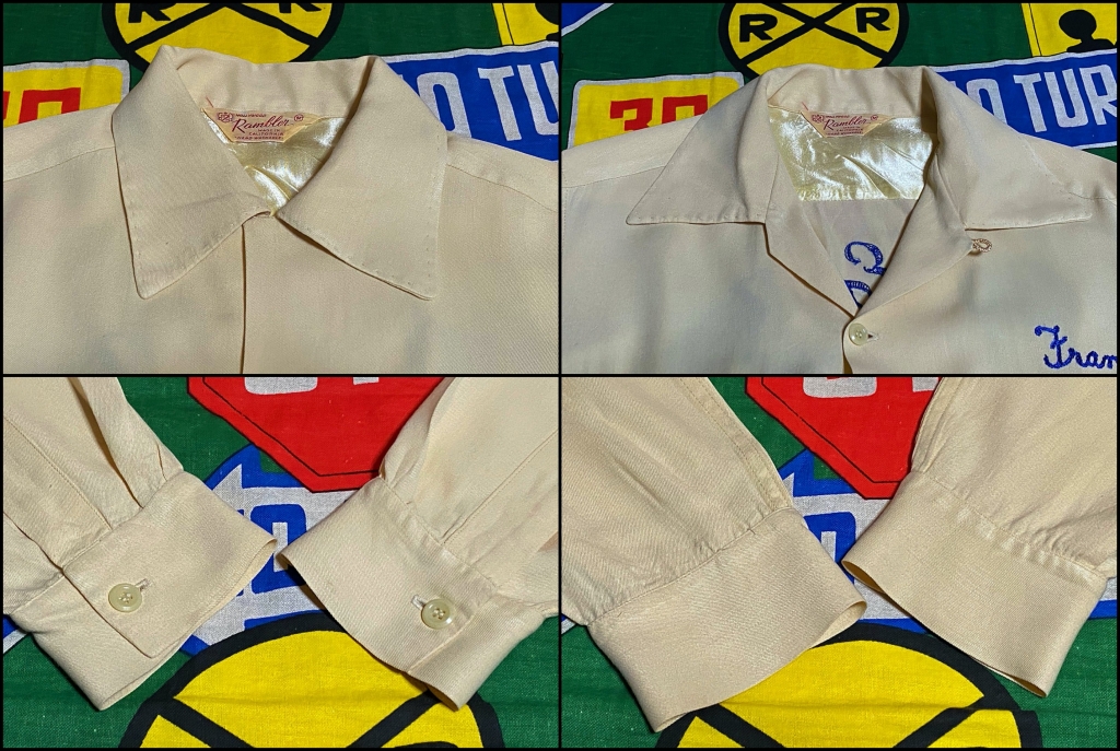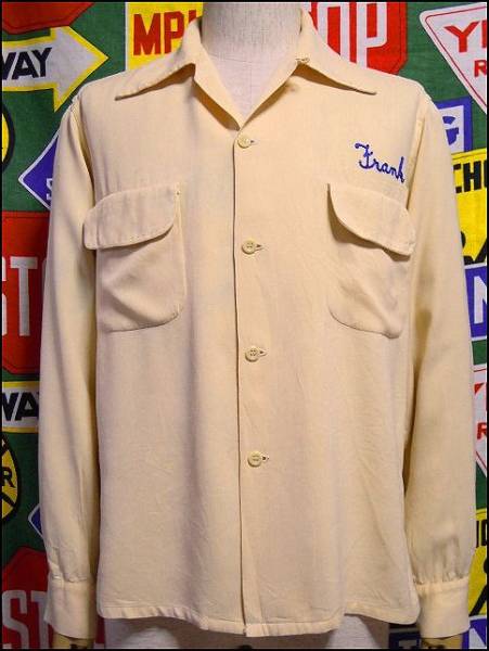 Item : 1940's~ Made in USA Ramller Vintage Rayon Gabardine Shirts With Chain Stitch and Hand Stitch