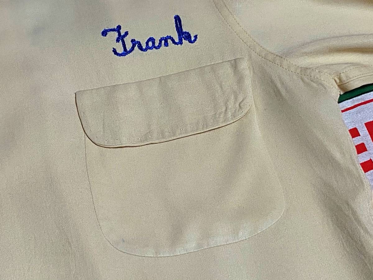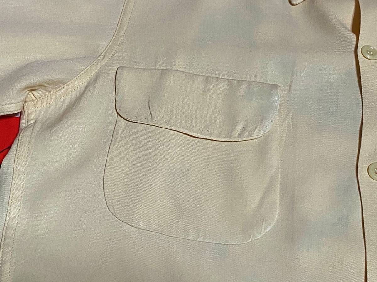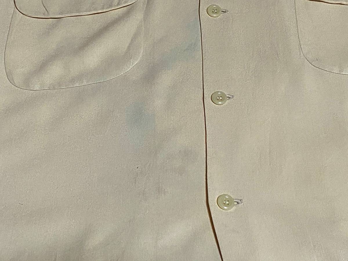 ☆チェーンステッチ入☆Made in USA製アメリカ製ビンテージレーヨンギャバシャツ40s40年代50s50年代ボーリングシャツハンドステッチデカ襟M