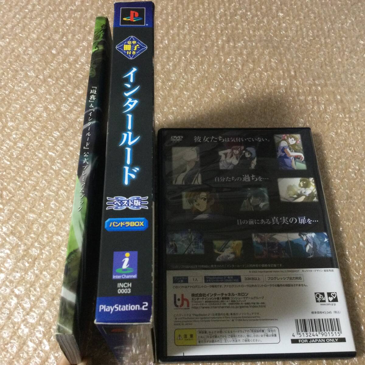 名作インタールードです!ベスト版(廉価版)で発売されてパッケージが新しくなりました!ゲーム内容に違いはありませんが、ベスト版に限定版のパンドラBOXが発売され、通常版にはない、斑霧&インタールードの公式プレミアムブックが同梱されて豪華になって帰ってきました!!しかも定価は通常版より安い(笑)(^^)