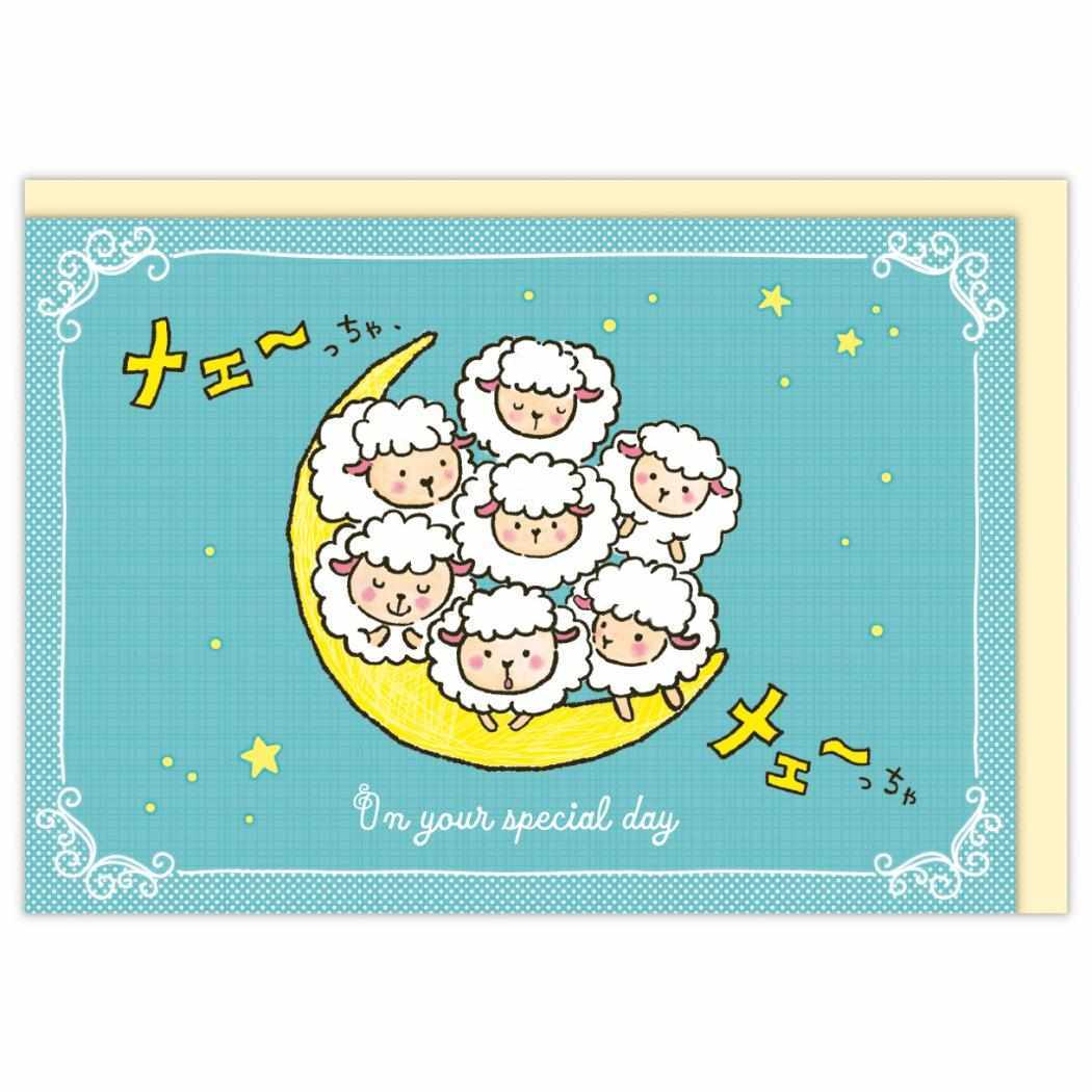 贈ってももらっても楽しいメッセージカード 羊たちがメェ-メェ-と誕生日をお祝い!贈ってももらっても楽しいグリーティングカードこちらは箔加工がとってもおしゃれな[グリーティングカード]大切な気持ちを可愛いデザインが届けてくれますほかにもろいろいろあるのでお気に入りをみつけてくださいカードサイズ:約154x108mm封筒サイズ:約162x114mm