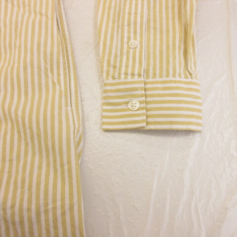 無印良品 良品計画 ブロードレギュラーカラーワンピース ロング 長袖 ストライプ 黄 白 M *A609 レディース