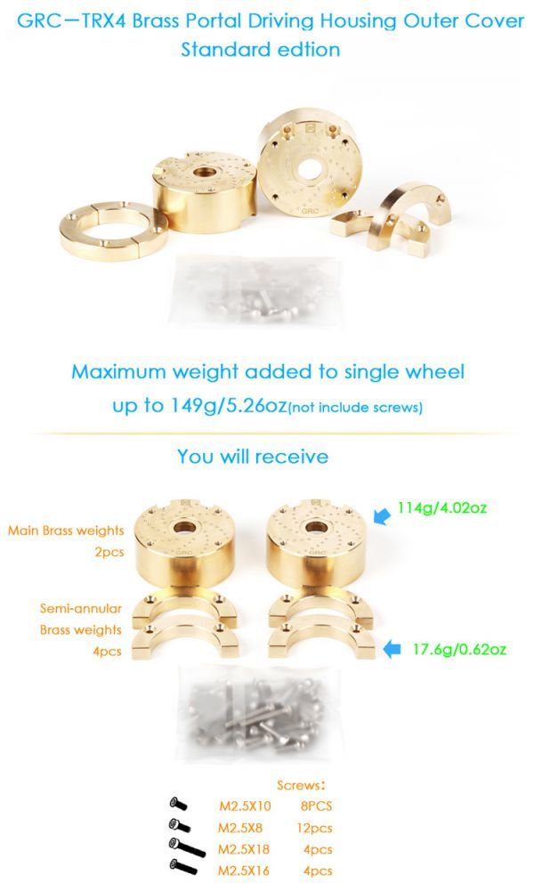 GRC製 GAX0062A TRX4/6用【非T社純正品】重量フィット/ブラスカウンターウェイト/バランスウェイト/ポータルナックル