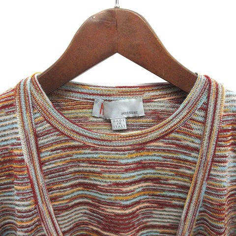 エムミッソーニ M MISSONI 総柄 ニット アンサンブル 長袖 カーディガン 半袖 トップス ウール ベージュ マルチカラー 44 レディース