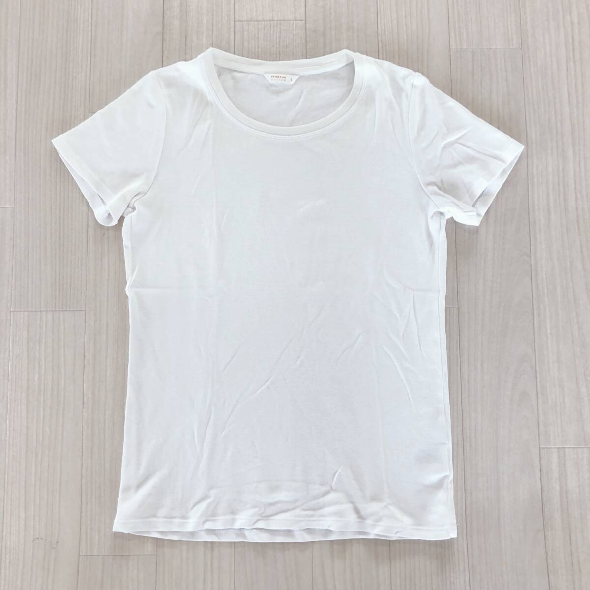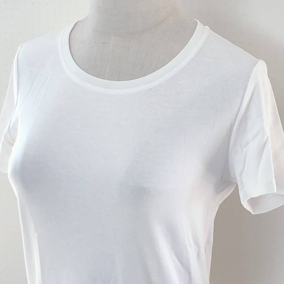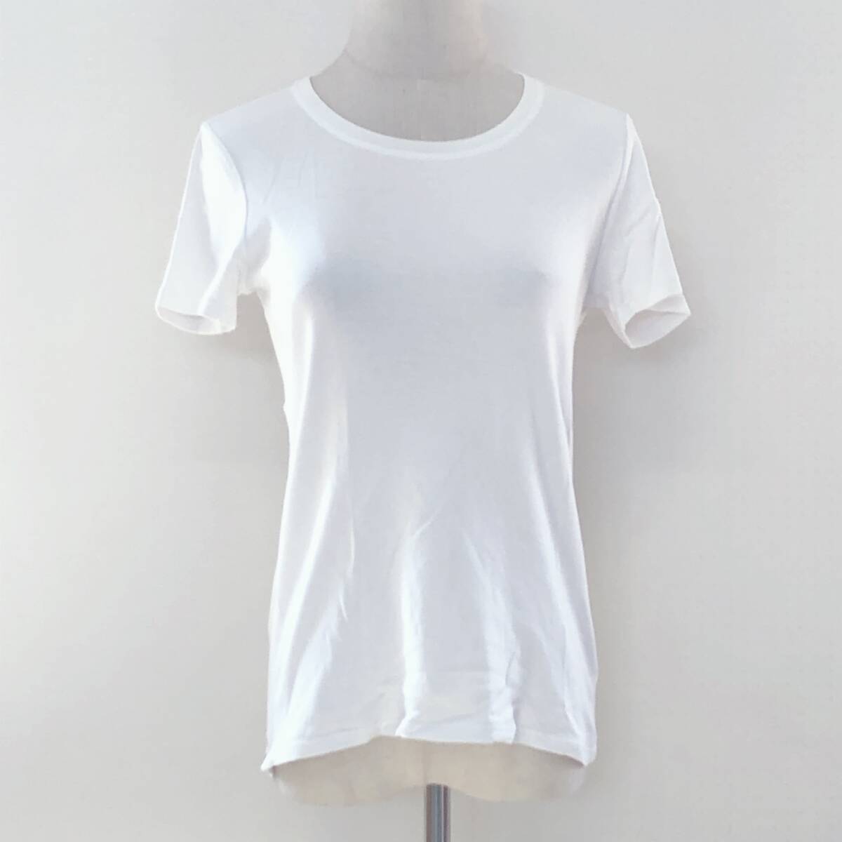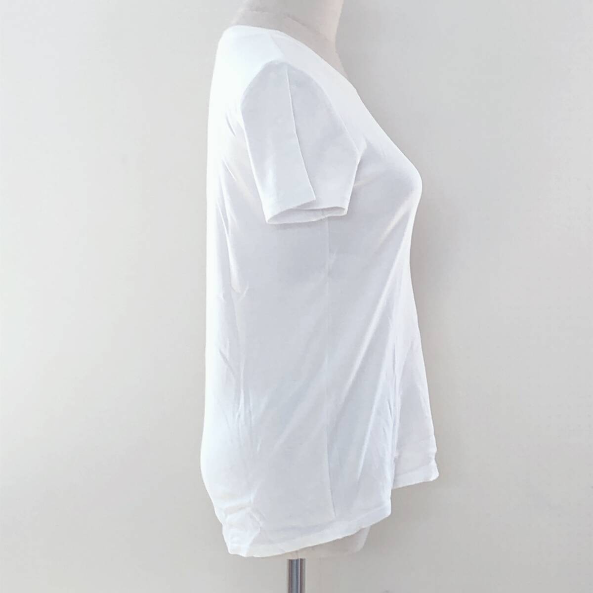YX1550 UNIQLO レディース トップス シャツ 半袖 薄手 伸縮性 丸首 L ホワイト 白 綿100% シンプル カジュアル おしゃれ 涼しげ 夏