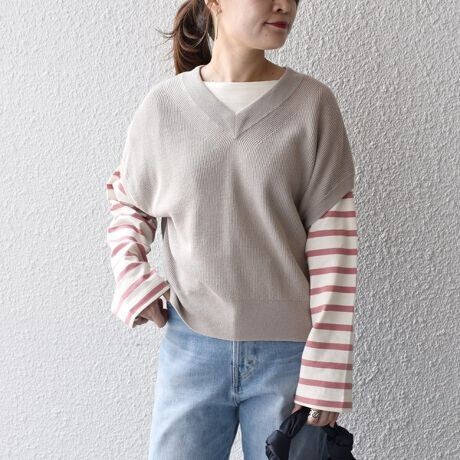 カットソー・ブラウス・ワンピースなど様々なレイヤードにも。