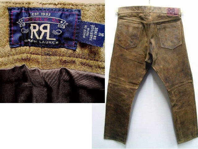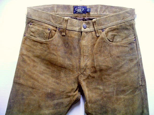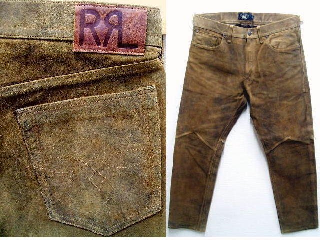 ◇即決[W36]RRL 黒タグ 一ツ星 21AW 牛革スエード スウェード レザーパンツ ビンテージ加工 汚れ スリム SLIM FIT デニム パンツ■6193