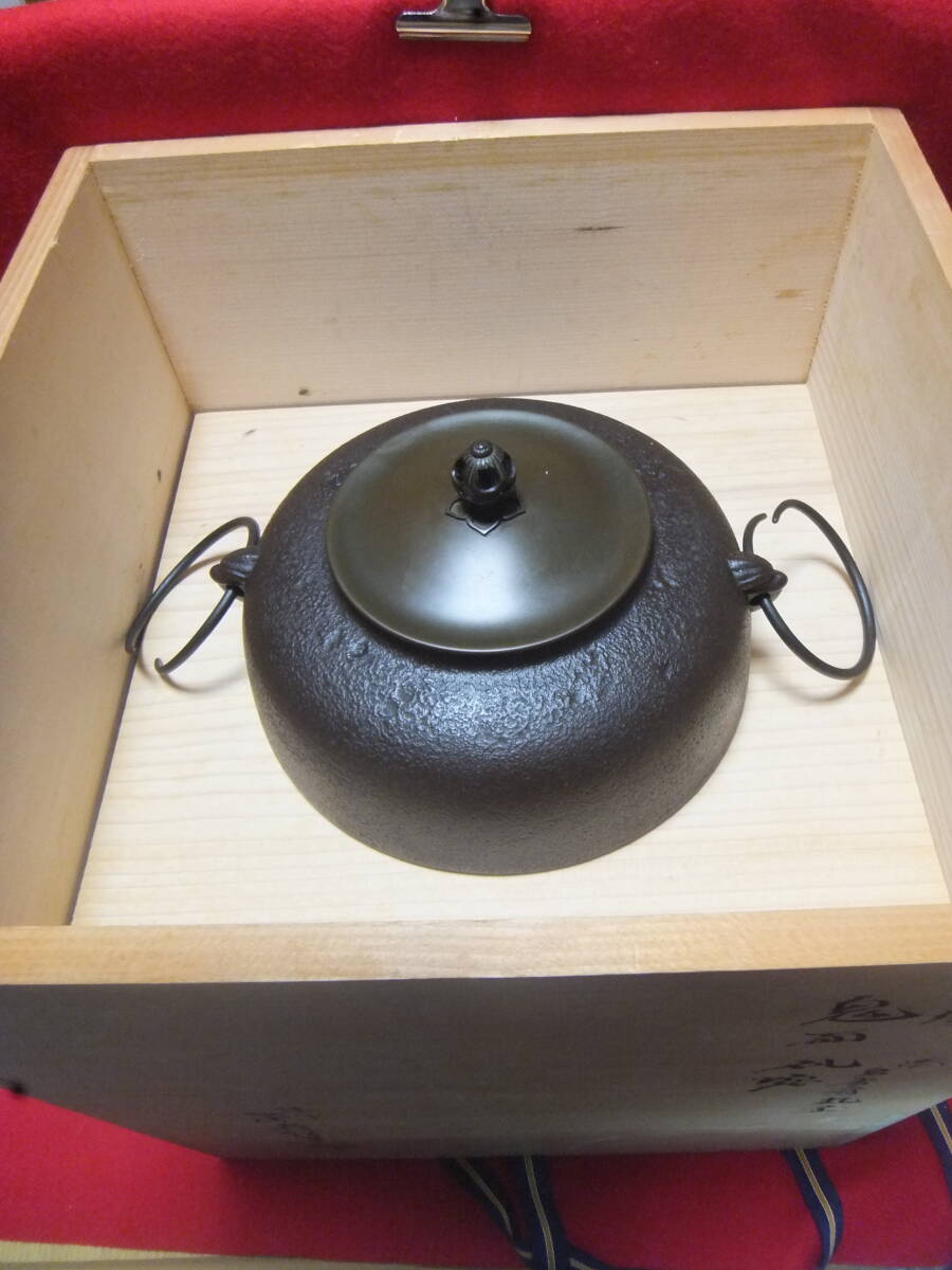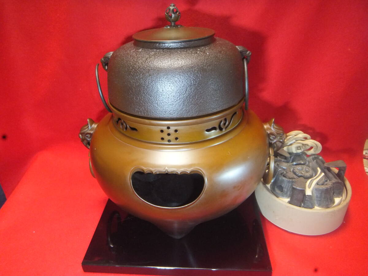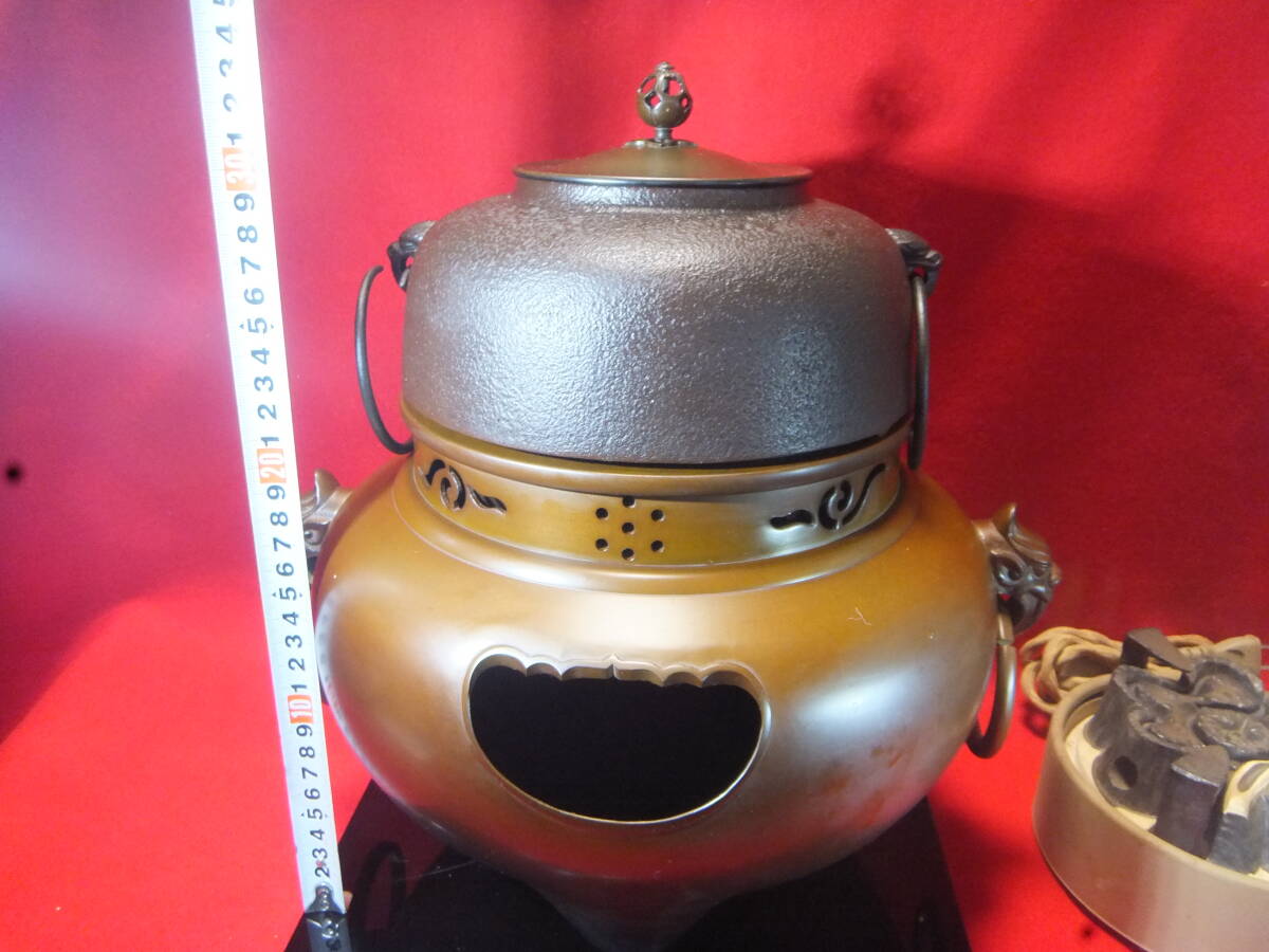 在銘【金森紹栄】【畠春斎】の風炉釜、(電熱器、風炉台、共箱あり) 美しい商品です、電熱器も良好です、
