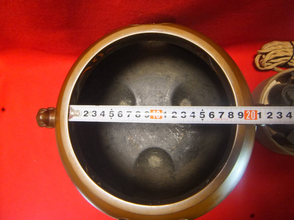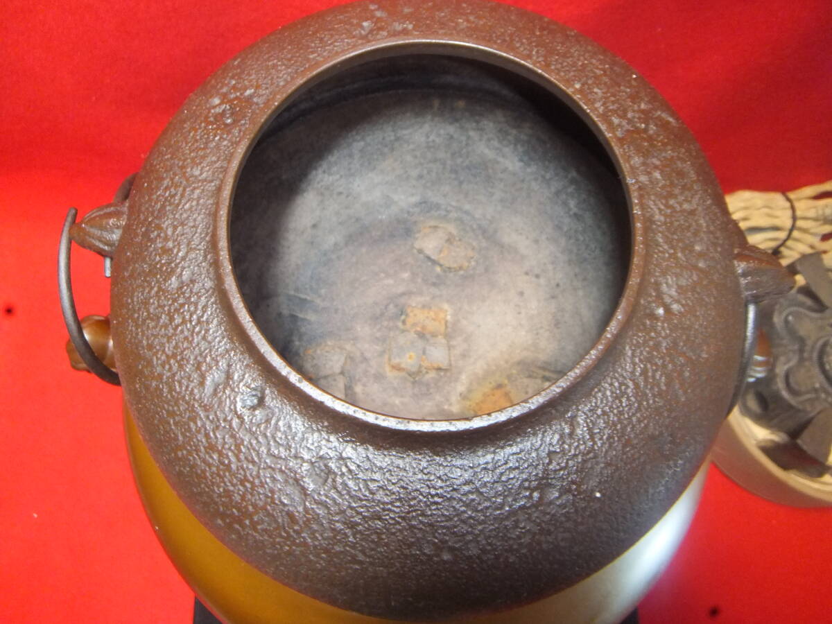 風炉 茶釜 鉄瓶 在銘【金森昭栄・畠春斎】釜師 鋳師 鋳物 唐銅 銅製 茶道具 共箱 アンティーク 昭和レトロ