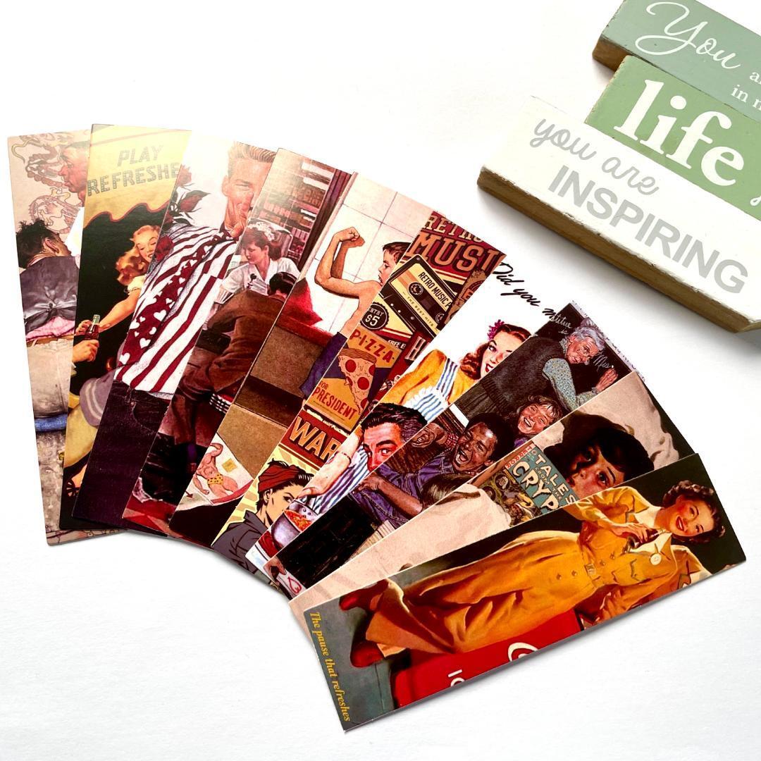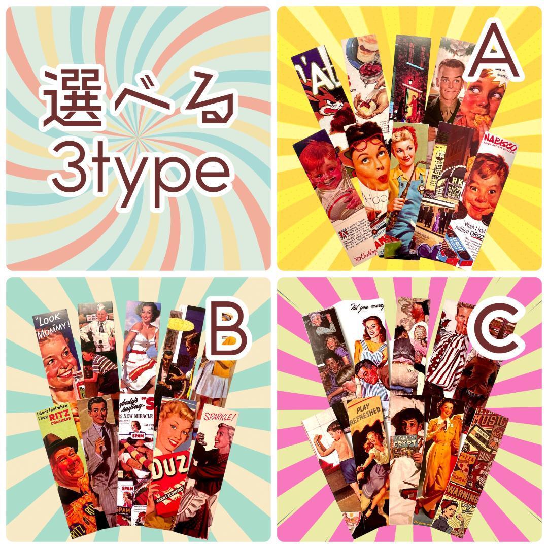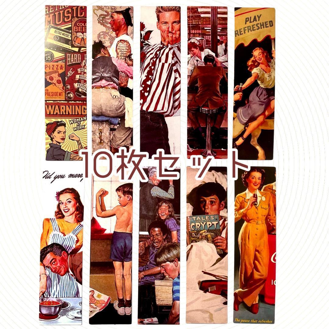 アメリカのレトロ広告をモチーフにした、紙製のしおり10枚セットです。
