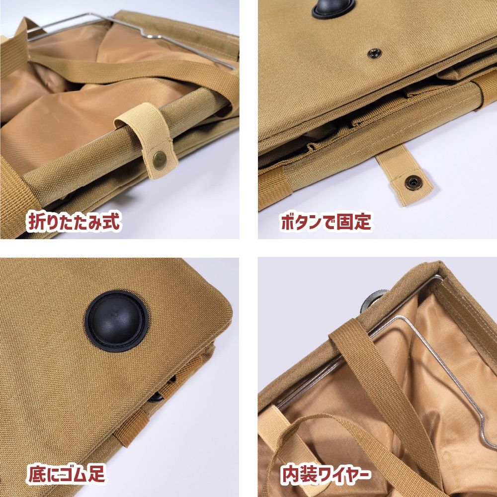 | こちらはGENERIC OUTDOOR 大容量のソフトコンテナボックスになります。 クッカーやバーナー・ガス缶・キッチンツールなど、高さがあってかさ張りやすいキャンプ道具を収納できます。 キャンプやアウトドア活動において、便利で頼りになる収納アイテムです。キャンプ道具、ツール、ギアなどを効率的に整理し、持ち運びも簡単に行えます。 持ち運びに便利な弾性ストラップが装備されています。どこでも簡単に持ち運べます。バッグ表面はオックスフォード素材を採用。汚れにくくキズや強度に強く、撥水性と防汚性に優れています。アウトドアでの使用に最適です。また、安定感がありバッグが形を保つための金属製サポートポールが組み込まれています。 底面には汚れや湿気から守るための脚が付いています。大容量&折りたたみ: 大容量で収納力がありながらも、不使用時には折りたたむことができます。多機能な吊下穴とDバックル: 4面に20個の吊下穴と2つのDバックルが配置され、様々なアイテムを吊るすことができます。 車内整頓、釣り、ピクニック、スポーツ、工具収納など様々なシーンで活躍するアウトドア大容量折りたたみコンテナバッグは、キャンプライフを便利で快適にします。 商品説明 ブランド:GENERIC OUTDOOR 品番:GO-SB002 サイズセット時:高さ約32cm×横幅35cm×奥行25cm サイズ畳んだ時:高さ約6cm×横幅35cm×奥行25cm 生地:900Dバリスティックポリエステル 重さ:約860g カラー:アーミーグリーン・ブラウンから1点お選びください。在庫に限りがありますので希望の柄に添え無い場合がありますのでご了承ください。色に強い拘りのある方は必ず事前に在庫確認を質問の欄から行ってください。 ※商品写真はお使いのモニター環境設定、お部屋の照明等により実際の商品と色味が異なる場合がございます。 ※サイズ・重量などの数値には若干の個体差があります。 ※細部のデザインは製造ロットにより予告なしに若干変更になる場合がございます。 何卒ご了承願います。 ※海外輸入品に付きスレ、キズ等がある場合がございますので、何卒ご了承願います。 ※良いものをより安く提供できるよう、エコ梱包させていただいております。 | |||