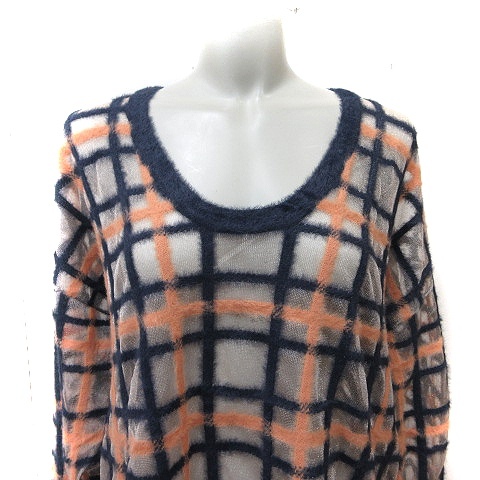 ケイビーエフ KBF アーバンリサーチ カットソー シアー シャギー ナイロン 長袖 ONE 紺 ネイビー オレンジ /YI レディース