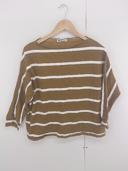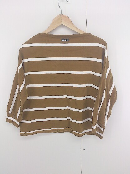 ◇ MILKFED. ボーダー ボートネック 七分袖 バスク Tシャツ カットソー サイズONE ダークベージュ ホワイト系 レディース P