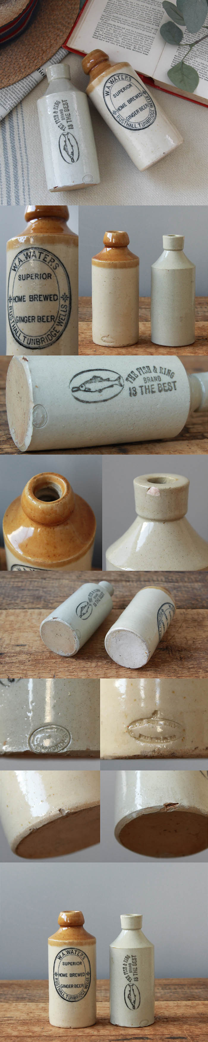 ◆イギリス アンティーク ジンジャービアボトルペア 2本 インテリア 陶器 店舗什器 「フラワーベース」K-138