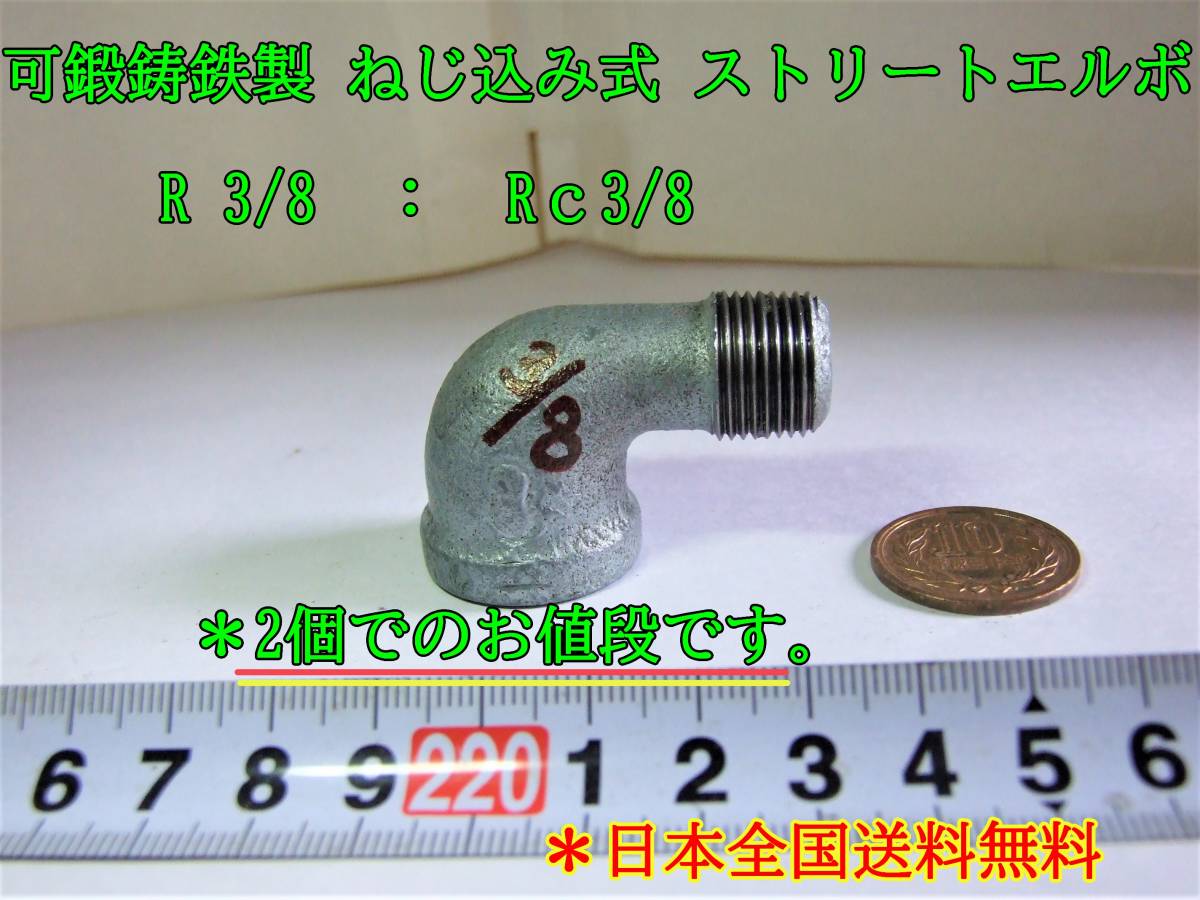 23-7/18 可鍛鋳鉄製 ねじ込み式 ストリートエルボ R 3/8 : Rc3/8 *2個でのお値段です。*日本全国送料無料