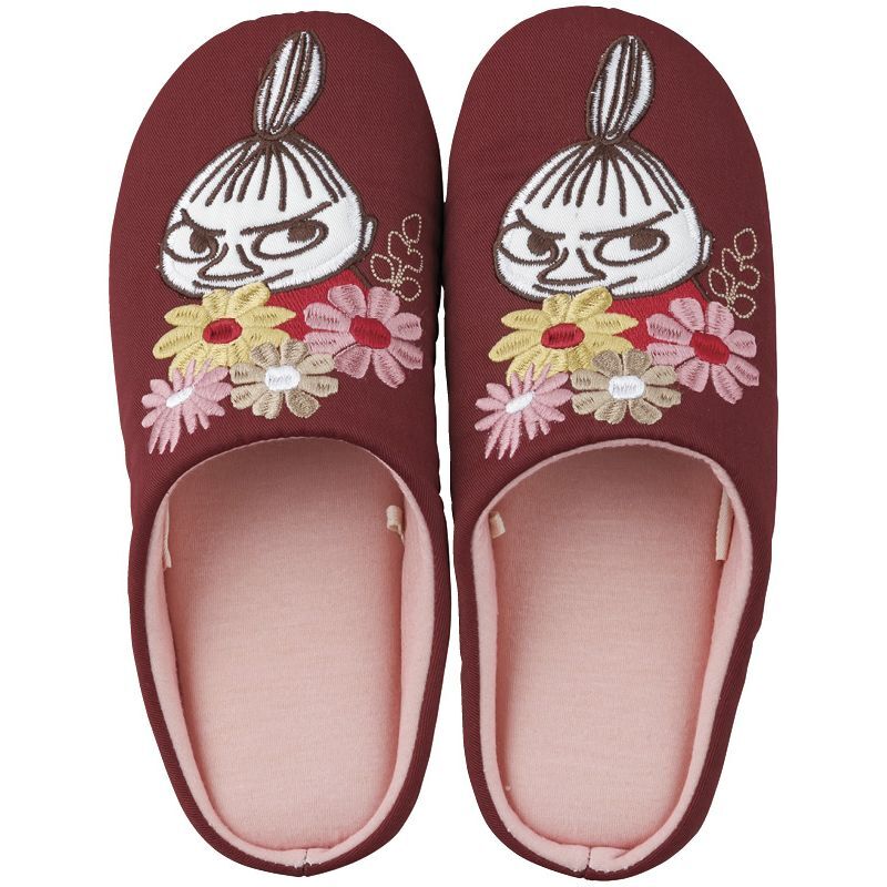 立体的な刺繍になっていてお花に寄り添うリトルミイが可愛いルームシューズです。