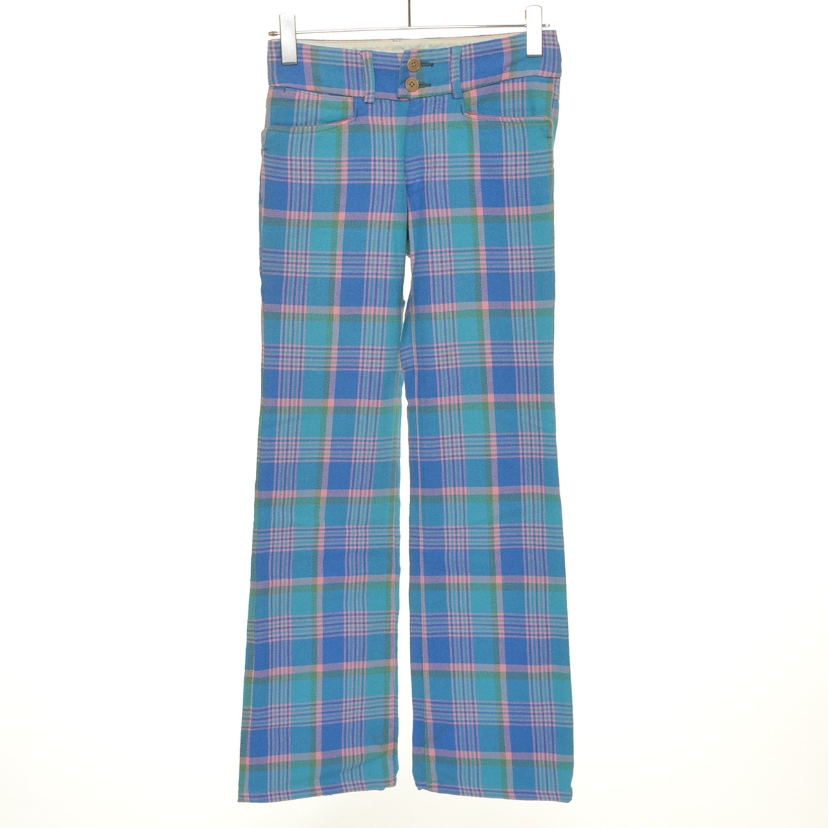 □474645 H.R.MARKET ハリウッドランチマーケット ハリラン ●パンツ チェックストレートパンツ サイズ27 レディース ブルー
