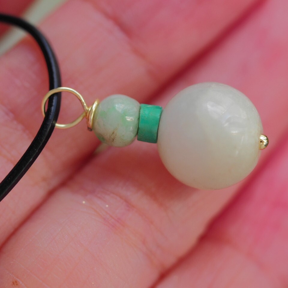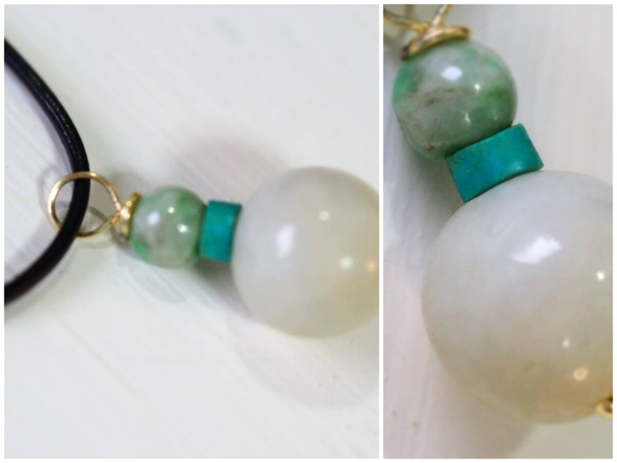 天然翡翠 牛革紐ネックレス 天然無処理ヒスイ