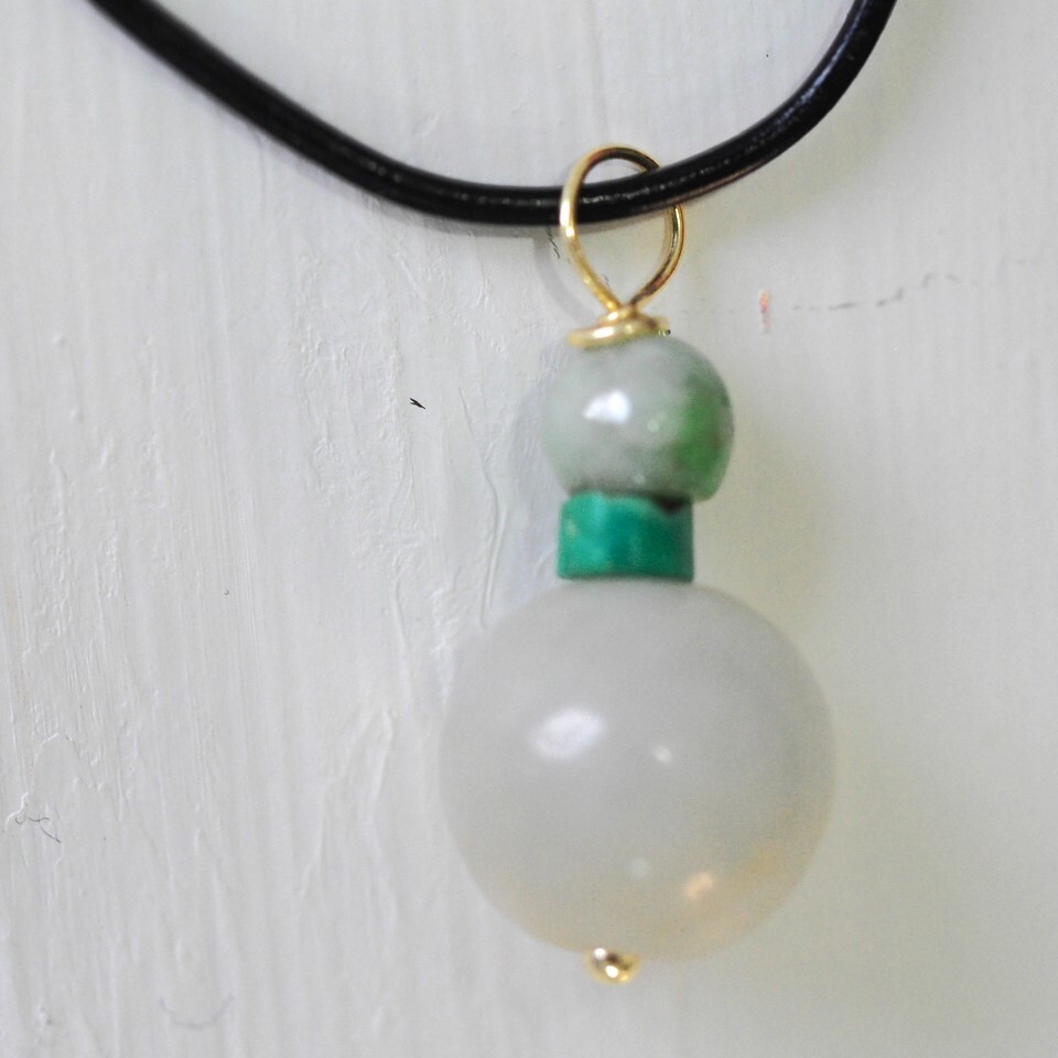こちらはセミラウンド糸魚川翡翠と天然バロックトルコ石を組合わせた紐ネックレスです。