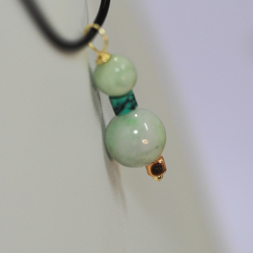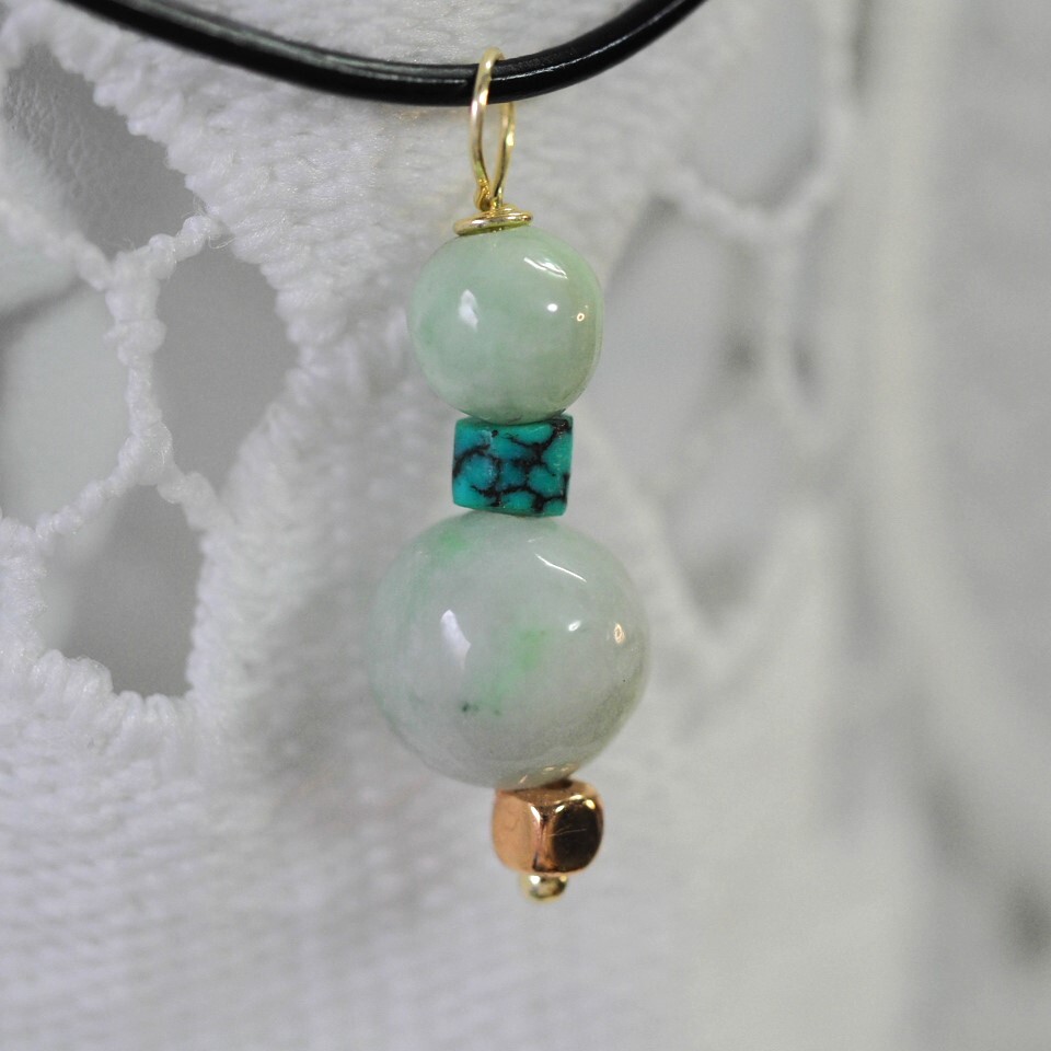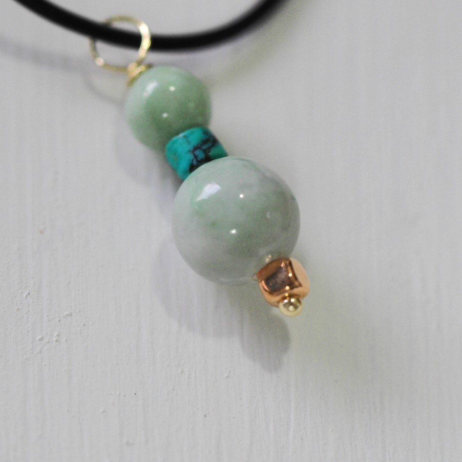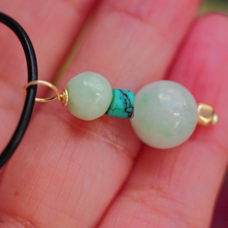 こちらはセミラウンド糸魚川翡翠と天然バロックトルコ石を組合わせた紐ネックレスです。