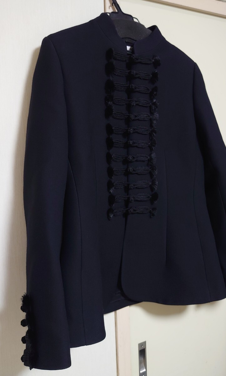 こちらはフィット感のあるシルエットに、ブランデンブルクスタイルの留め具とオフィサーカラーを合わせるというアレンジの効いたデザイン。