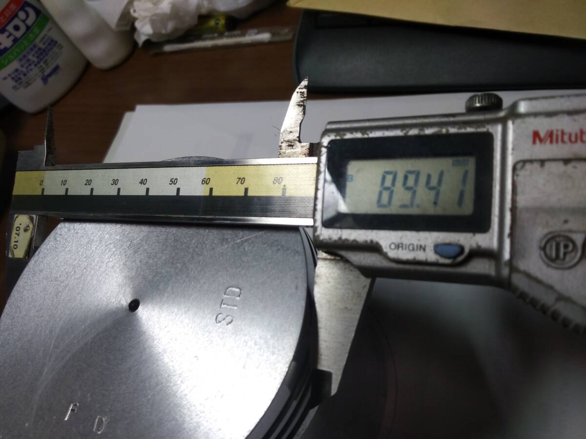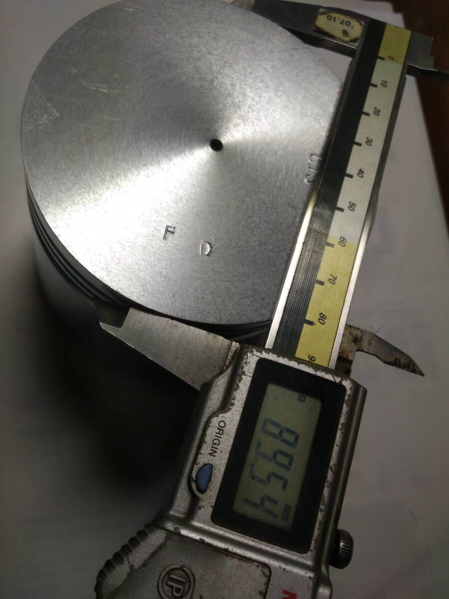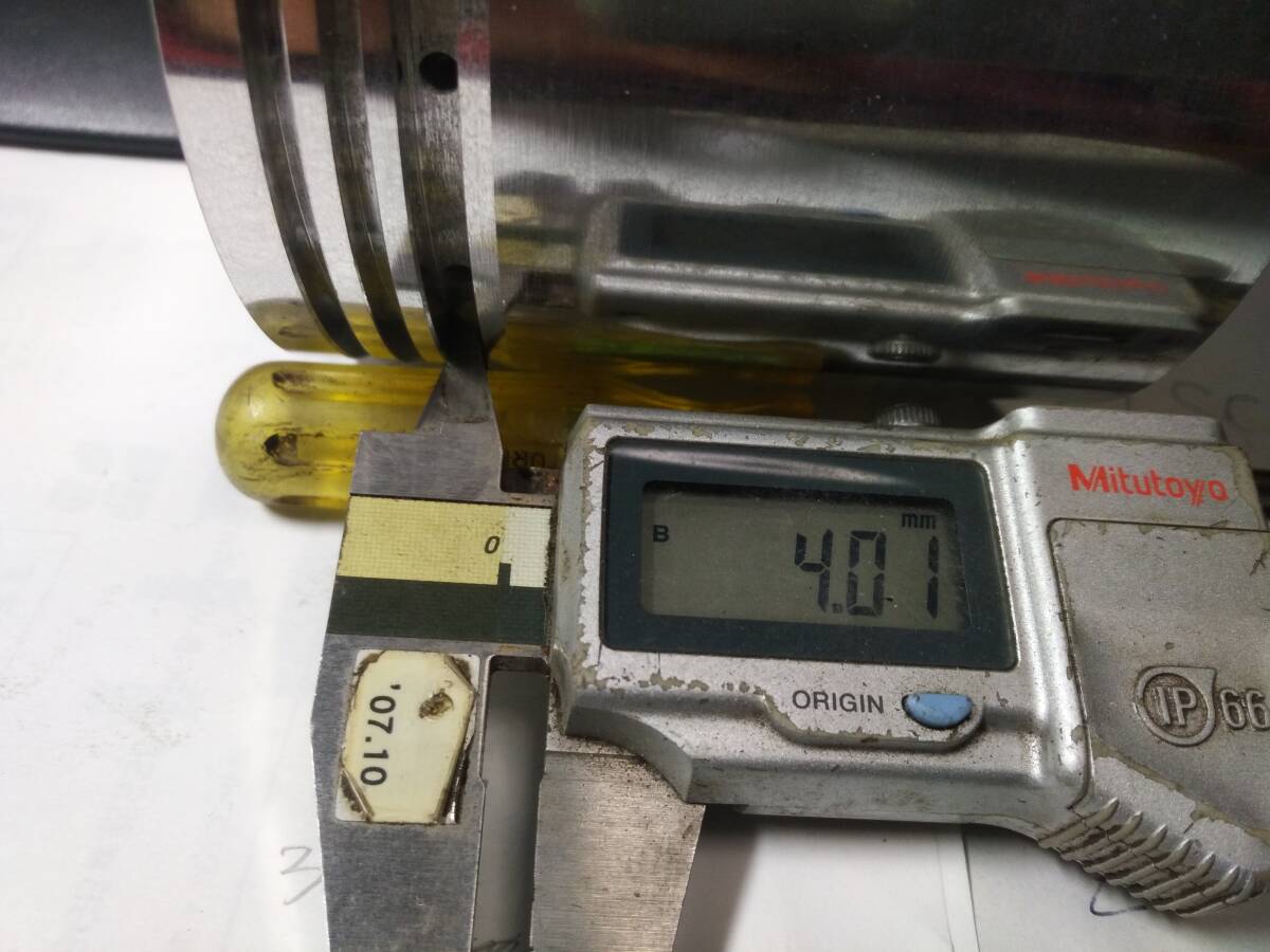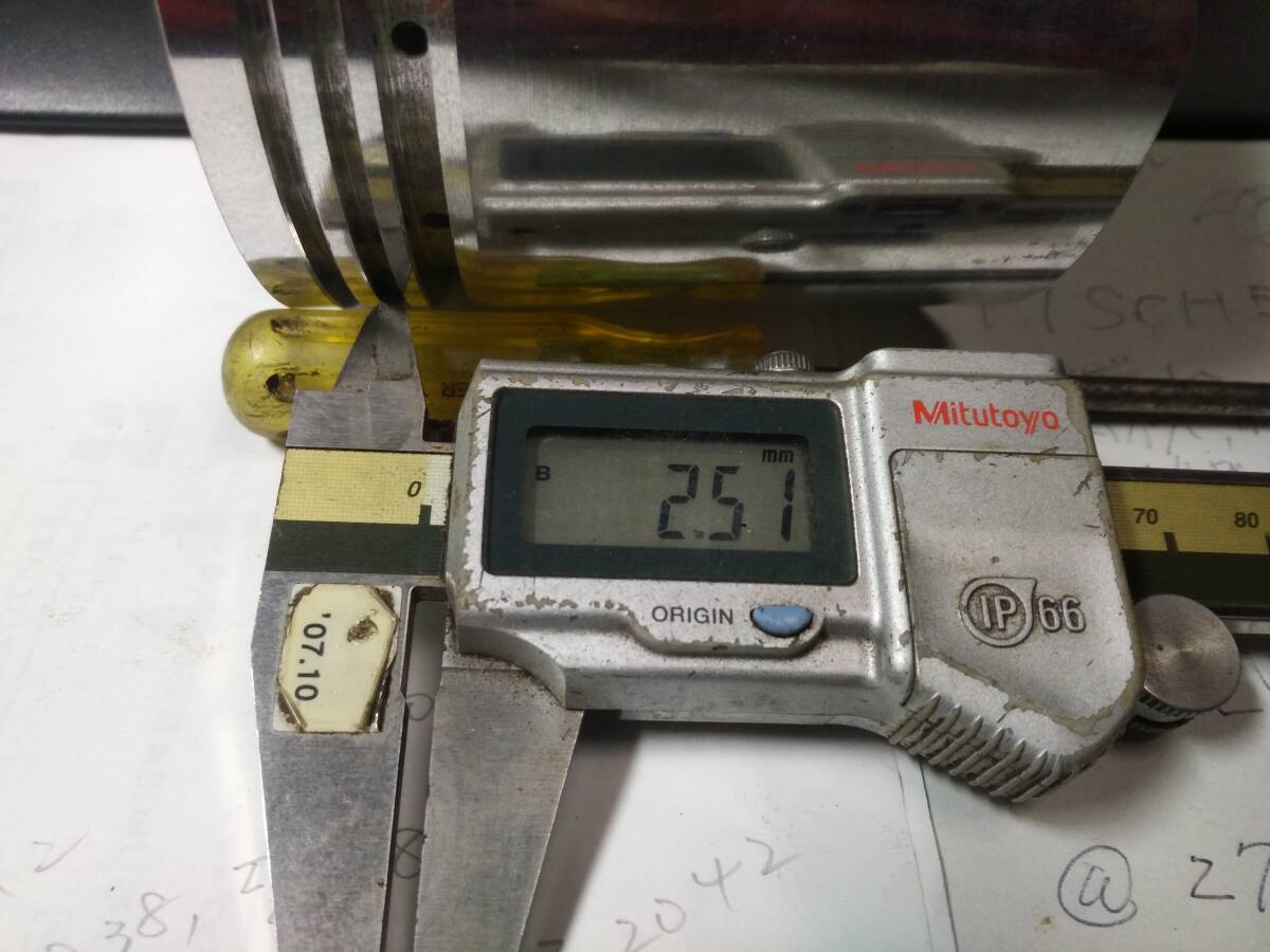 〇ピストン直径はスカート部89.88㎜、ピストントップクランク軸方向89.54㎜、ピストントップクランク軸直角方向89.41㎜、ピストンリング溝幅はトップ2.51㎜、セカンド2.51㎜、オイル4.01㎜です。写真にてご確認ください。