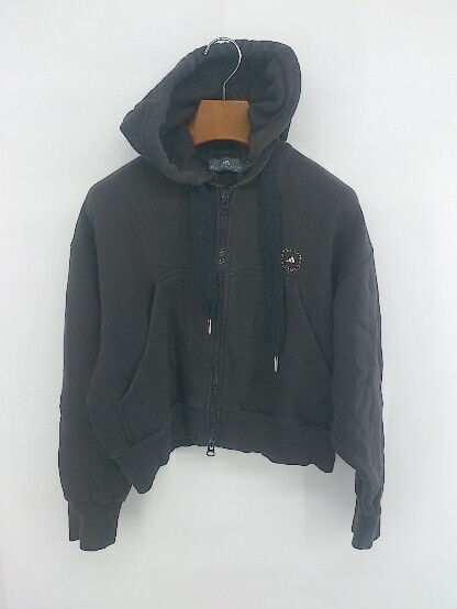 ◇ adidas × Stella McCartney 裏起毛 ジップアップ ロゴ スウェット 長袖 パーカー サイズS ブラック レディース E