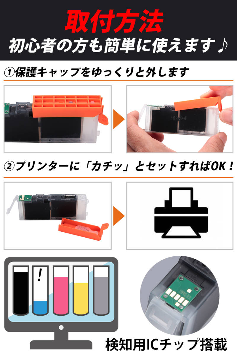 【インク残量表示機能付】純正インクカートリッジ同様に機能する新品の最新型ICチップ 搭載で、インクの残量を検知。なくなりそうになるとパソコン画面でお知らせしてくれるので、交換のタイミングが一目でわかります。