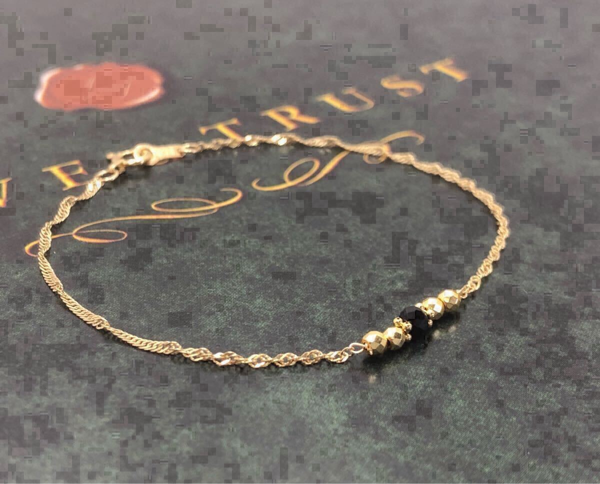 k18 18金 28cm ブレスレット オニキスブレスレット3mm アンクレット スクリューチェーン0.9mm 淡水パール2mm ミラーボール2.5mm