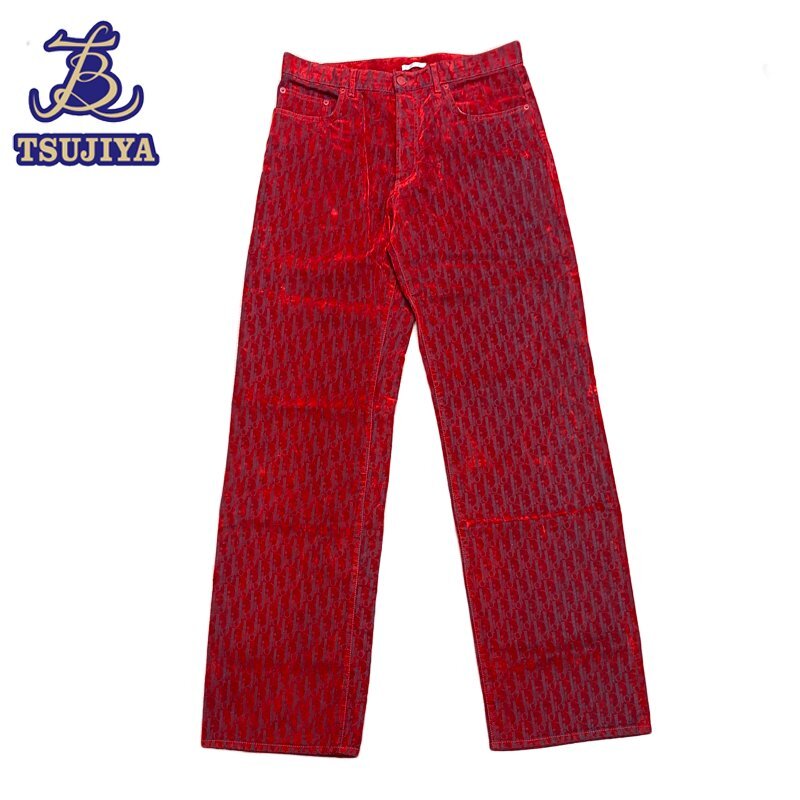 ◆大幅値下げ!★ほぼ美品★ ChristianDior クリスチャンディオール 5ポケットパンツ ベルベット オブリーク メンズ サイズ31 レッド 中古A【辻屋質店A2355】 |
