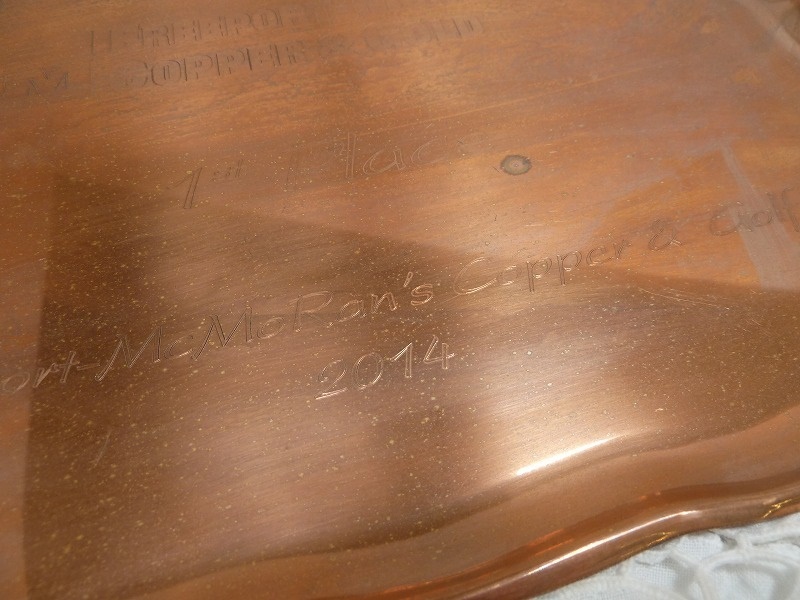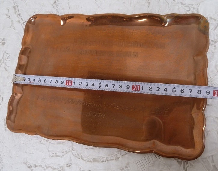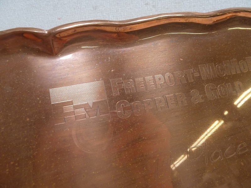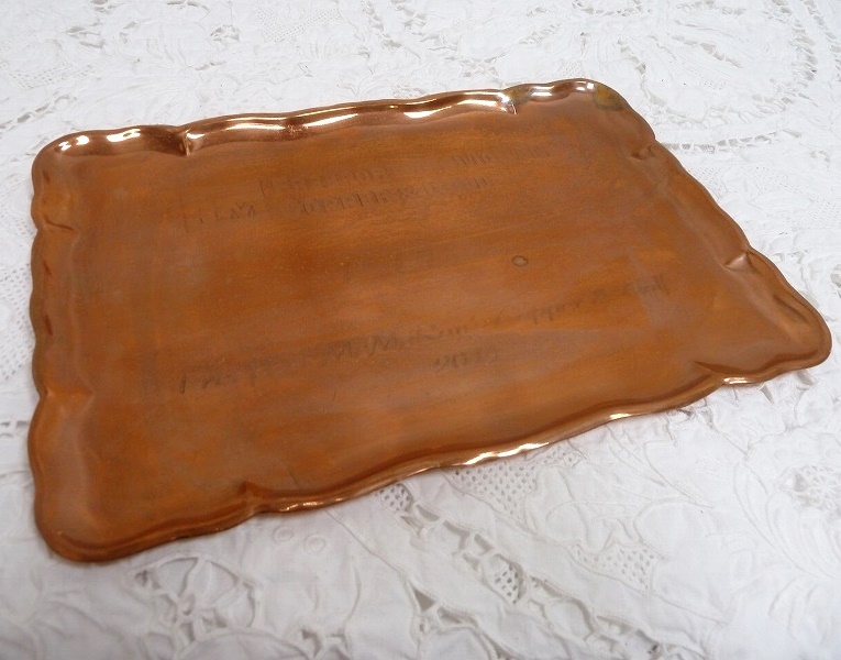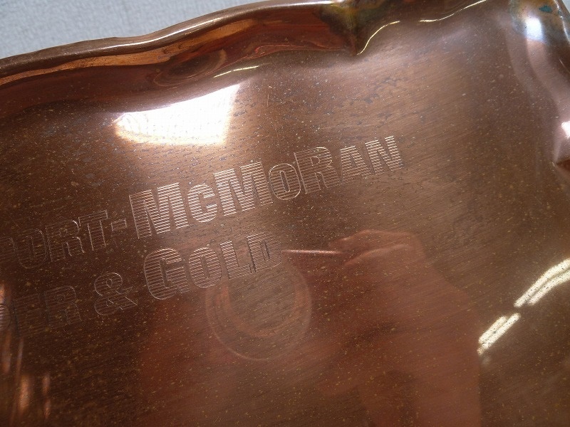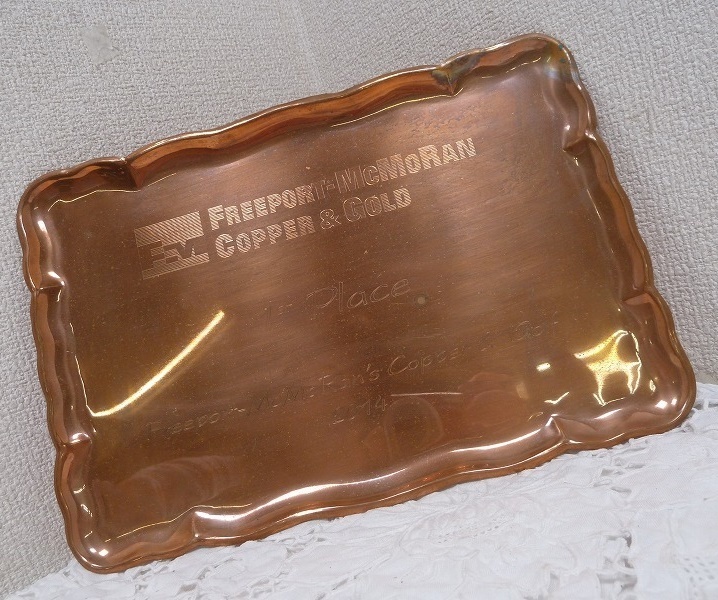 (☆BM)銅製 コッパー(0812-①)FREEPORT-MCMORAN フリーポート・マクモラン社 420g/COPPER&GOLD ティートレイ レトロ お盆 飾り皿 オブジェ