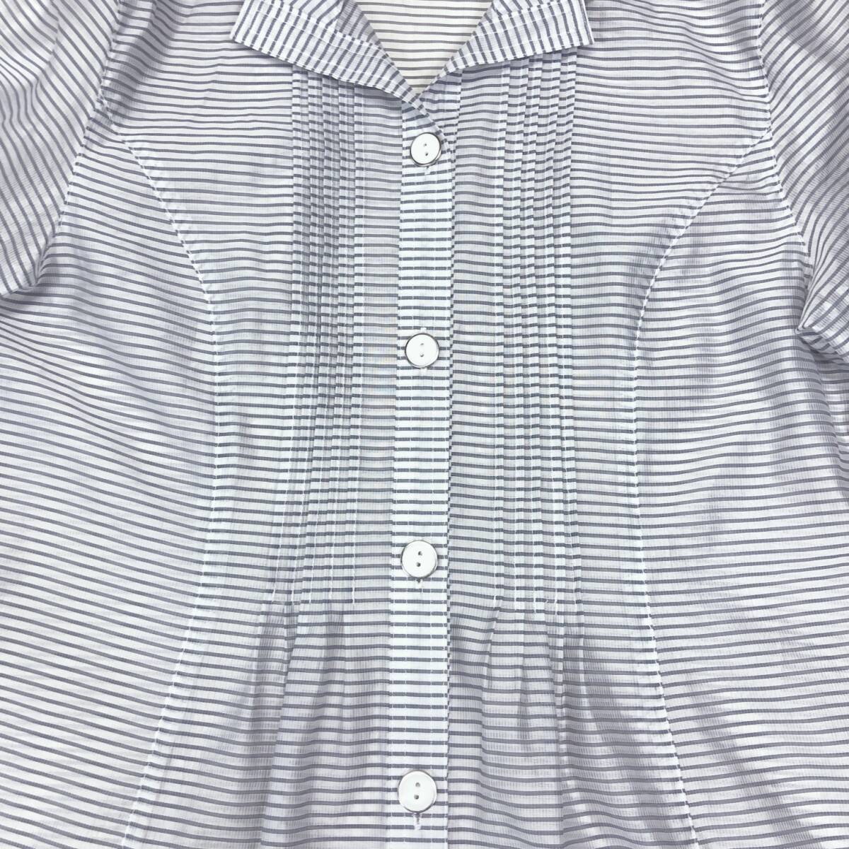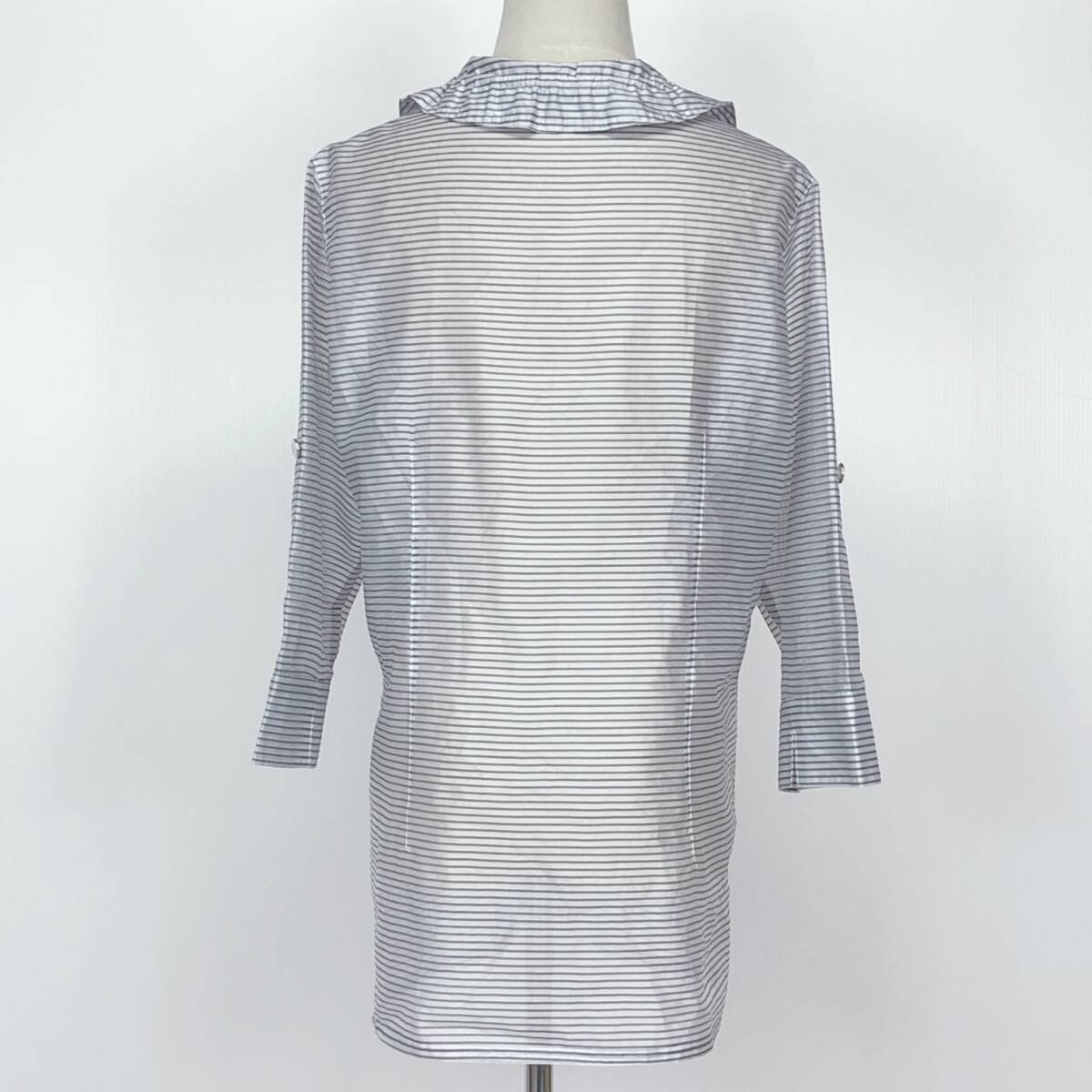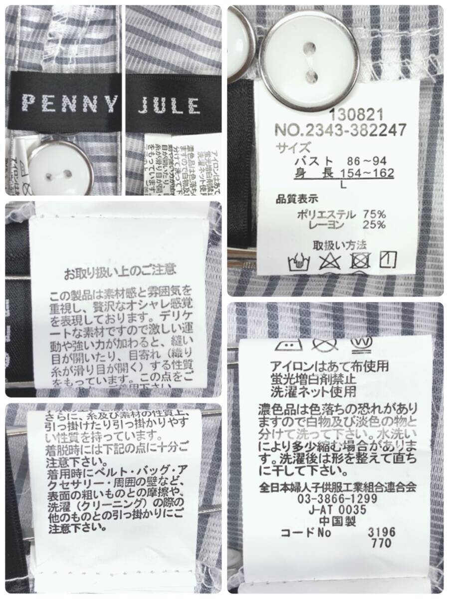 YX1299 PENNY JULE ペニージュール レディース トップス ブラウス 透け感 袖長さ調節可 予備ボタン付 薄手 L 白 ボーダー 涼しげ おしゃれ