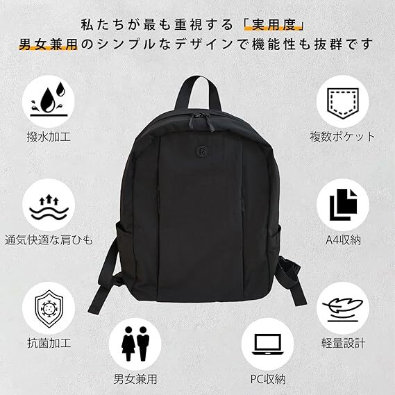 [ROSE NOIRE] リュック レディース 軽量320g 大容量 防水 A4 7ポケット PCリュック バックパック 14インチPC リュックサック 大人