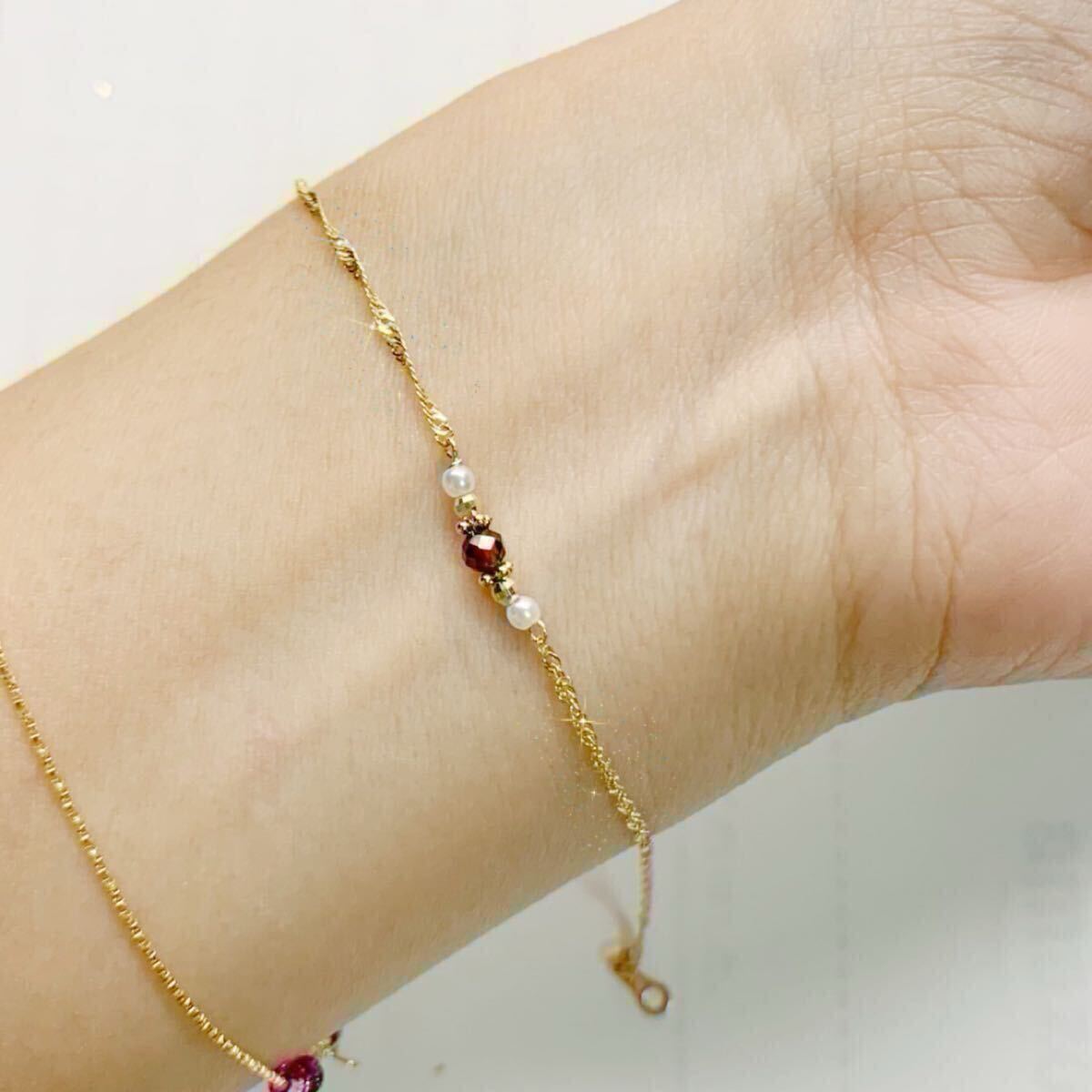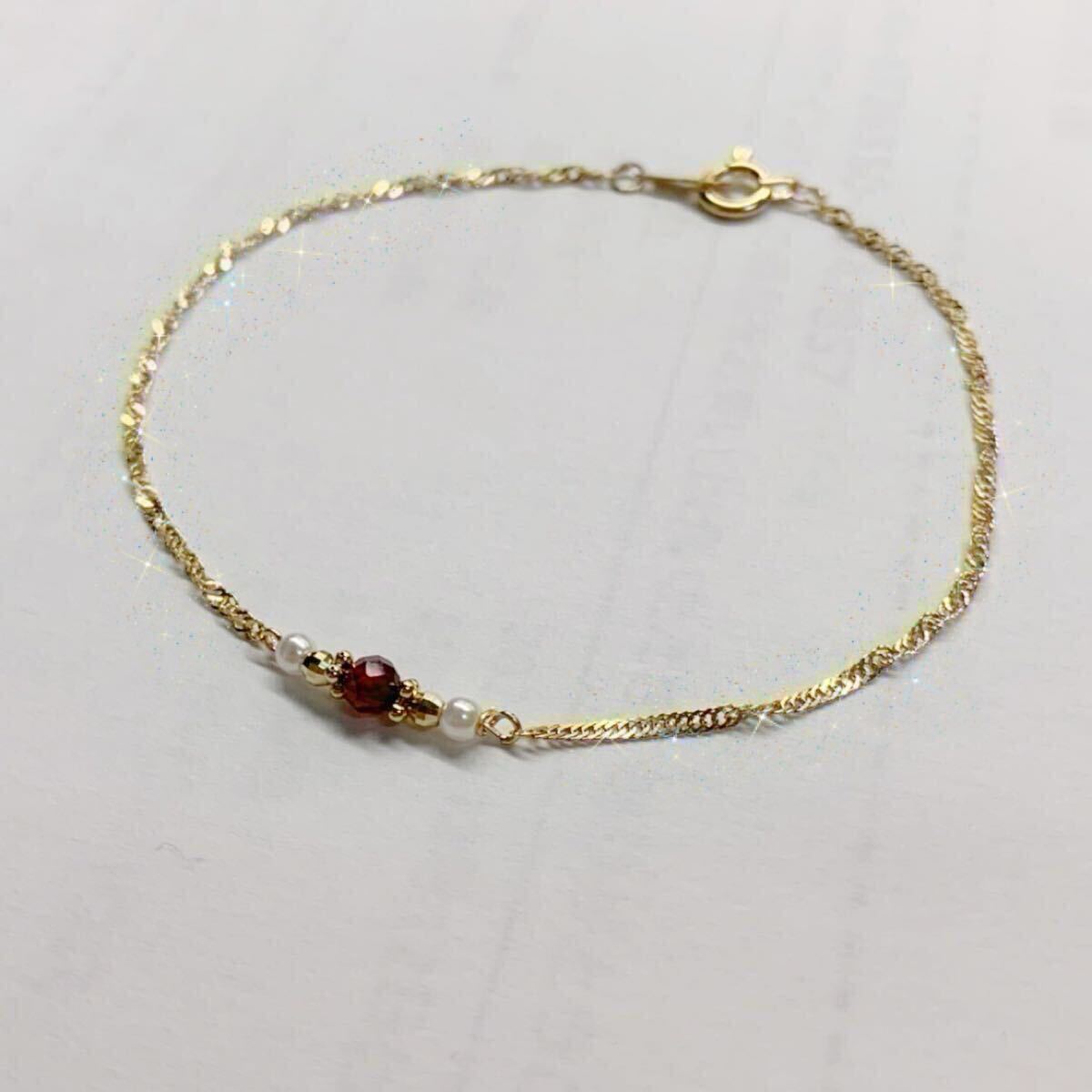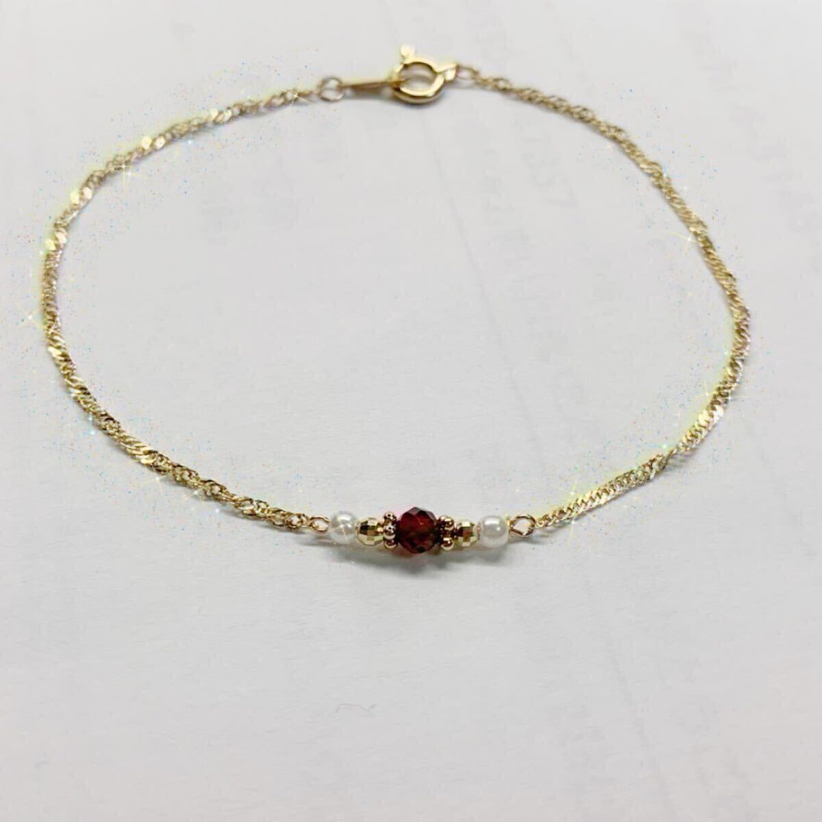 k18 18金 24cm ガーネットブレスレット3mm アンクレット スクリューチェーン0.9mm 淡水パール2mm ミラーボール2.5mm