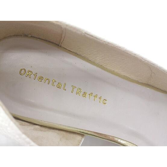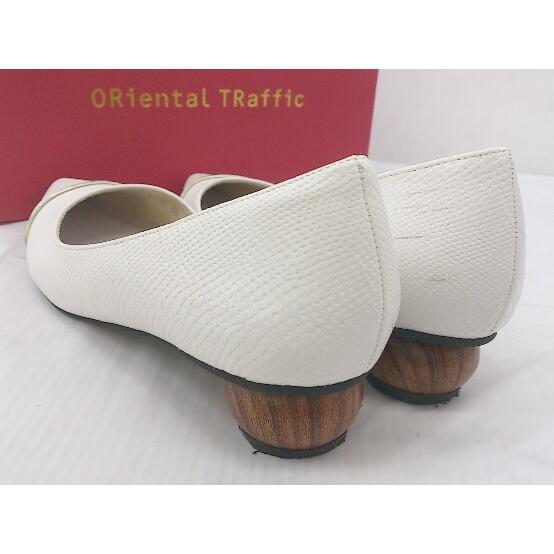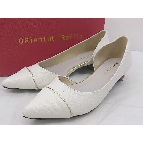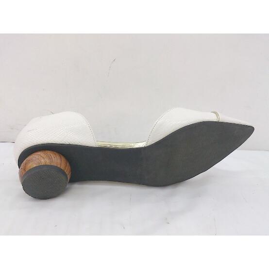 ◇ ◎ Oriental Traffic 型押し ポインテッドトゥ パンプス サイズ38 ホワイト レディース