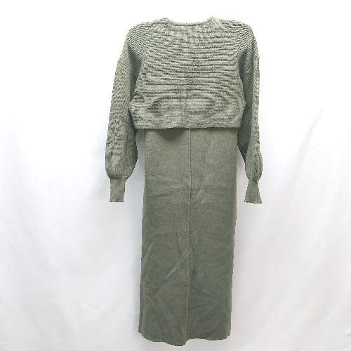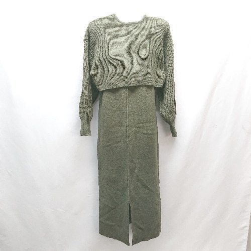 ◇ KOBELETTUCE コウベレタス 綺麗め 大人 無地 ワンピース ニット サイズS カーキ レディース E