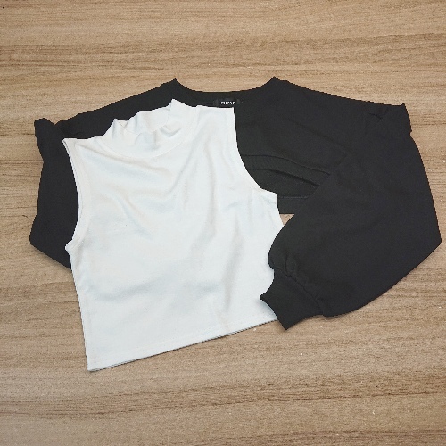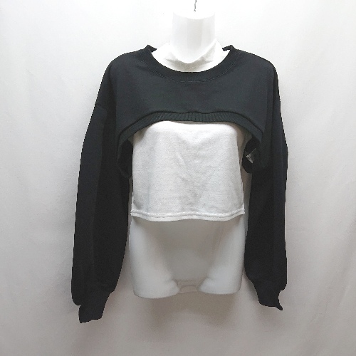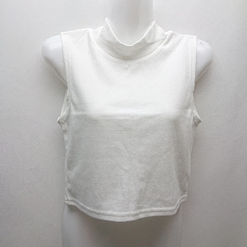 ◇ ENVYM アンビー ハイネック ノースリーブ ショート丈 カットソー トレーナー サイズF ホワイト/ブラック レディース E