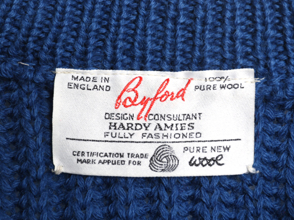 60~70年代頃のヴィンテージ ByFord のウール ニットセーター です。 ByFordは、主に下着やニットウェア等を販売する 1919年創業のイギリスの老舗アパレルブランド DESIGN CONSULTANT HARDY AMIES ビスポークテーラリング発祥の地 サヴィル・ロウに店を構えるイギリスを代表する老舗テーラー HARDY AMIES がデザインを監修 品質・デザイン共に間違いありません。 MADE IN ENGLAND ( イングランド製 英国製 ) 素材は、100% PURE WOOL ( ウール ウールマーク付き ) ざっくり編まれたローゲージニット 収縮して体にフィットして熱を逃がさないリブ編み しっかりとした厚手のヘビーウェイトですが 柔らかく見た目より軽い、ストレスのない着心地の 保温性の高い素材が使用されています。 コーディネートの良いアクセントになる ほかではあまり見かけない、シックなブルー シンプルなリブ編みのチャンキーニットに フロントのみケーブル編みが施された凝ったデザイン ざっくり着れる、丸っこい人気のシルエット これだけで様になる 長く愛用できる商品です。 |