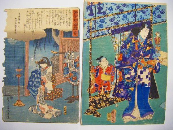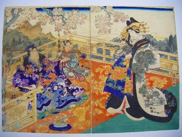 (2)国貞、画 花魁と若君と小姓の花見(仮) 2枚・蔦屋、板・国貞、画ですが、歌川国玉、筆との記載有り