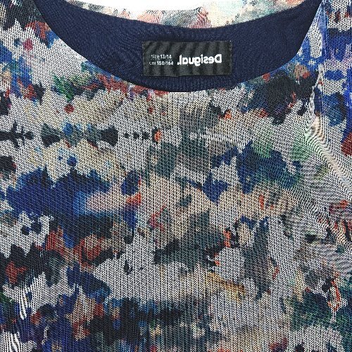 ◇ Desigual デシグアル 総柄 切り替えデザイン 半袖 ミニ ワンピース サイズ13/14 マルチカラー レディース E 1