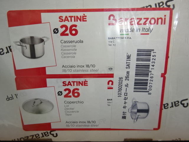 【新品未使用品】Barazzoni|バラゾーニ 蓋付 キャセロール 26cm SATINE 107602026