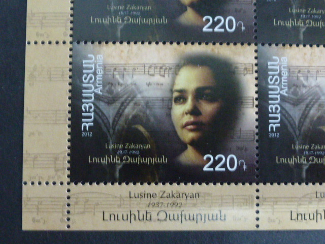 アルメニア切手 ソプラノ歌手 ルシン・ザカリアン 生誕75年 2012年 シート