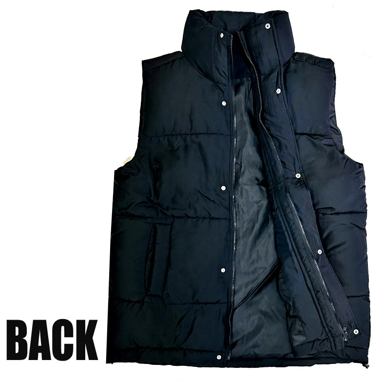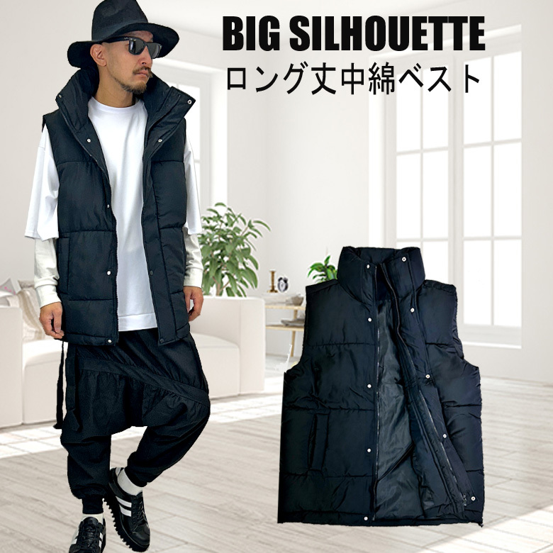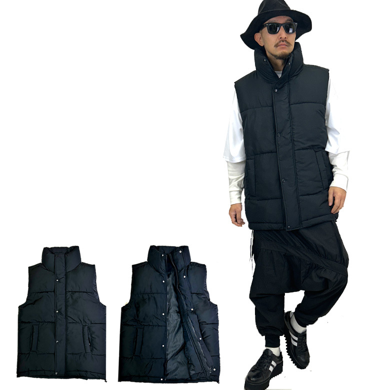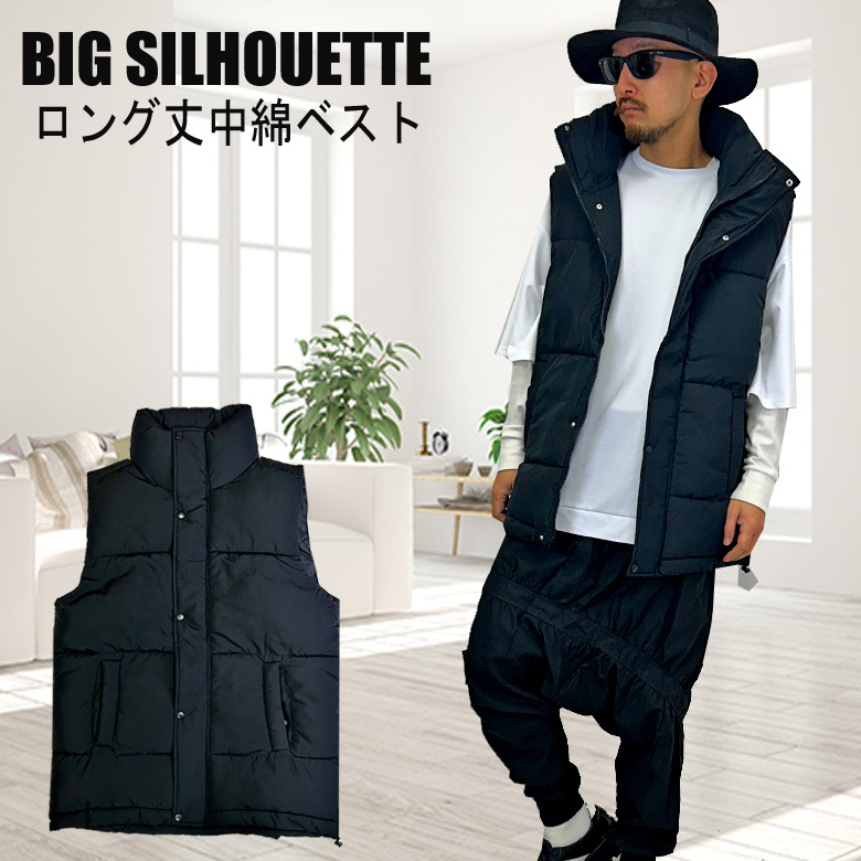 ビックシルエット ロング 中綿ベスト 340-32uau 紳士 軽量 フェイクダウンベスト 新品 ブラック L
