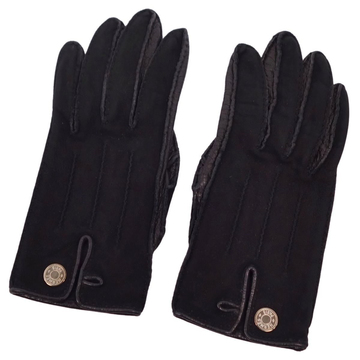 | 美品 エルメス HERMES 手袋 グローブ スウェードレザー セリエ レディース フランス製 6.5 ブラック |