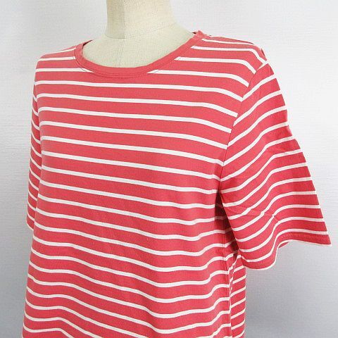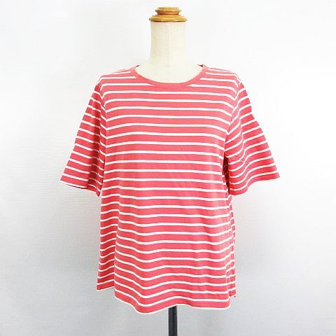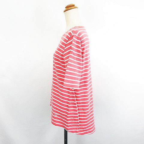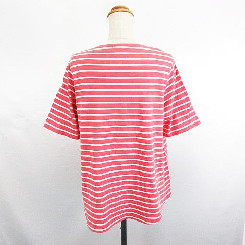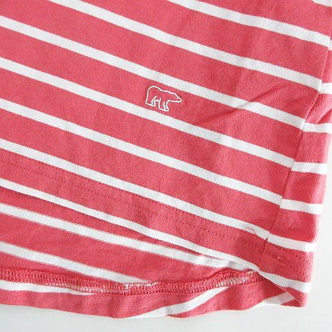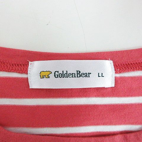 ゴールデンベア GOLDEN BEAR Tシャツ カットソー 半袖 クルーネック ボーダー ロゴ オーガニックコットン LL ピンク×ホワイト ※EKM レディース