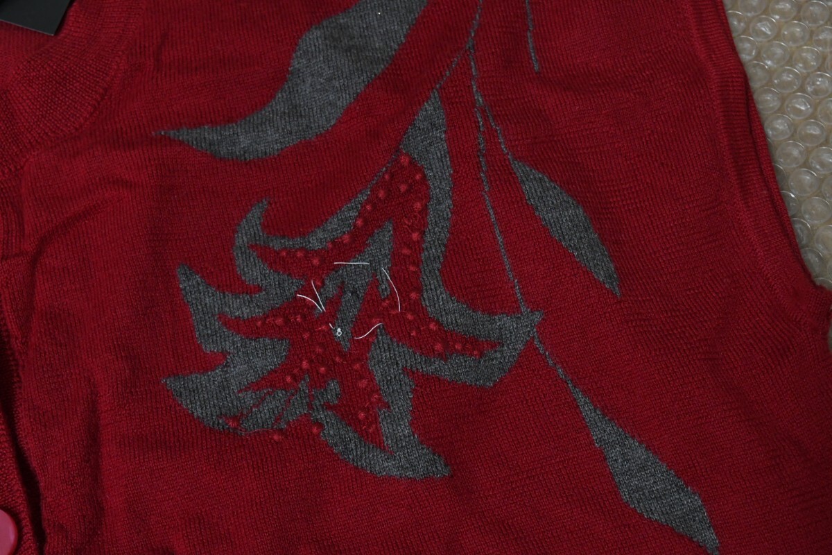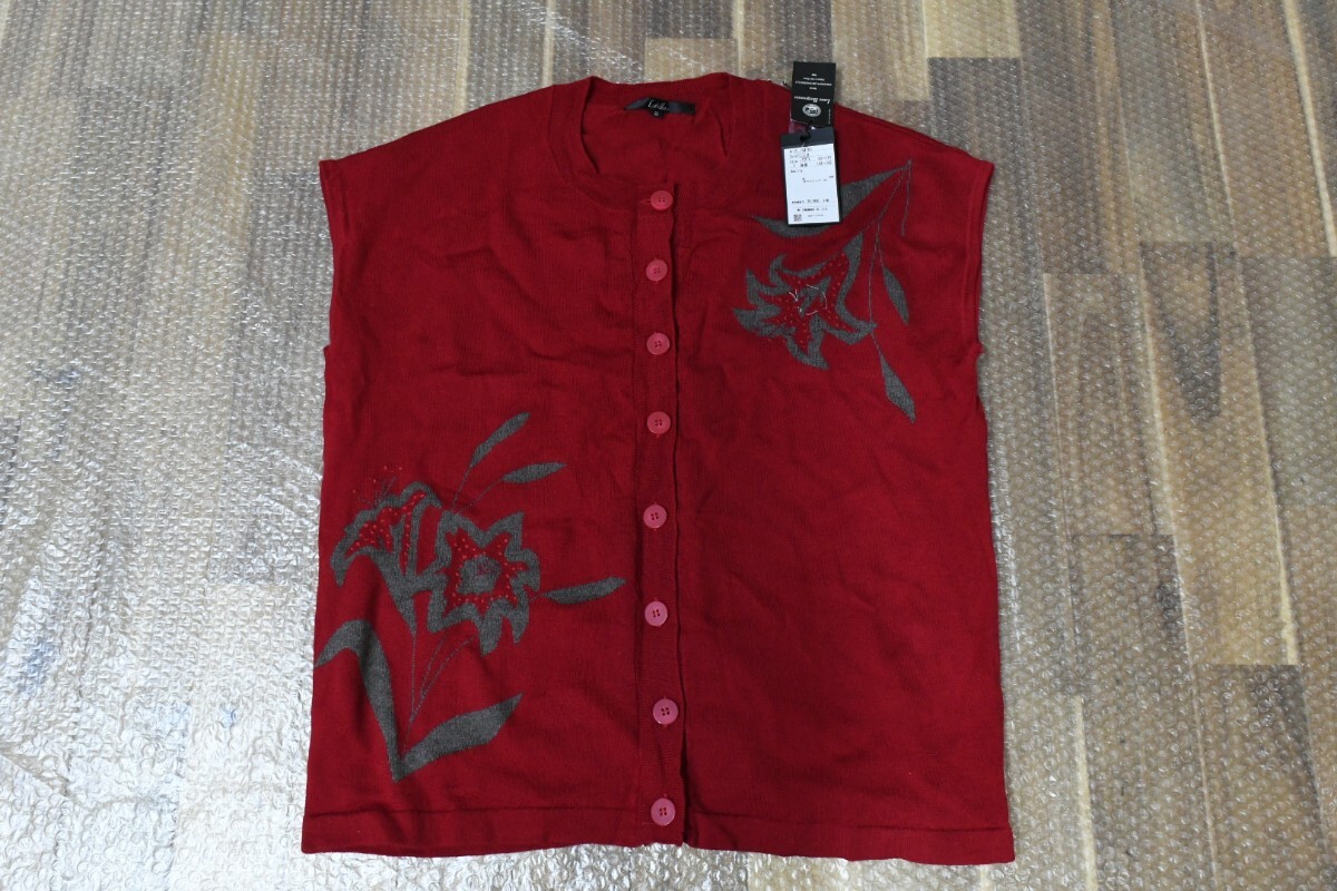 未使用保管品 レヴィラ levilla トップス セーター ニットベスト カーディガン 毛 ウール100% レッド 花 定価3万 の出品です。
