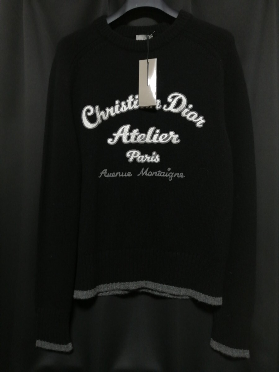 Lサイズ大きいサイズ クリスチャンディオールアトリエブラックニットセーター一瞬でディオールと分かるディオールジャイアントロゴ